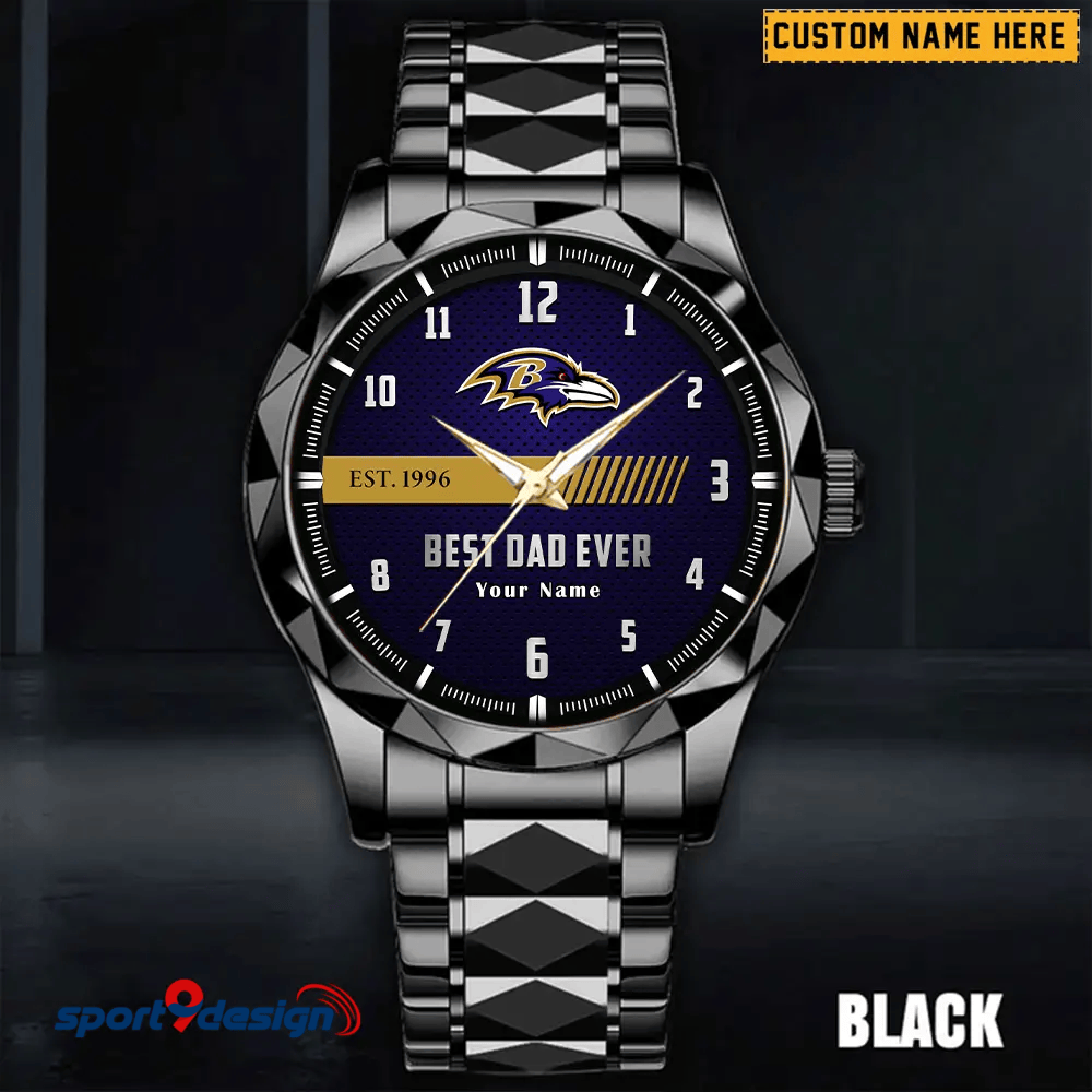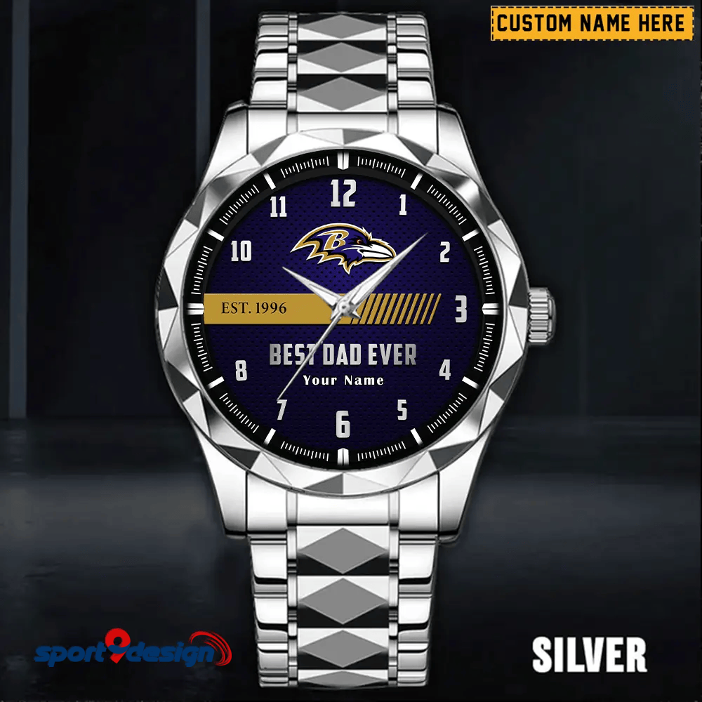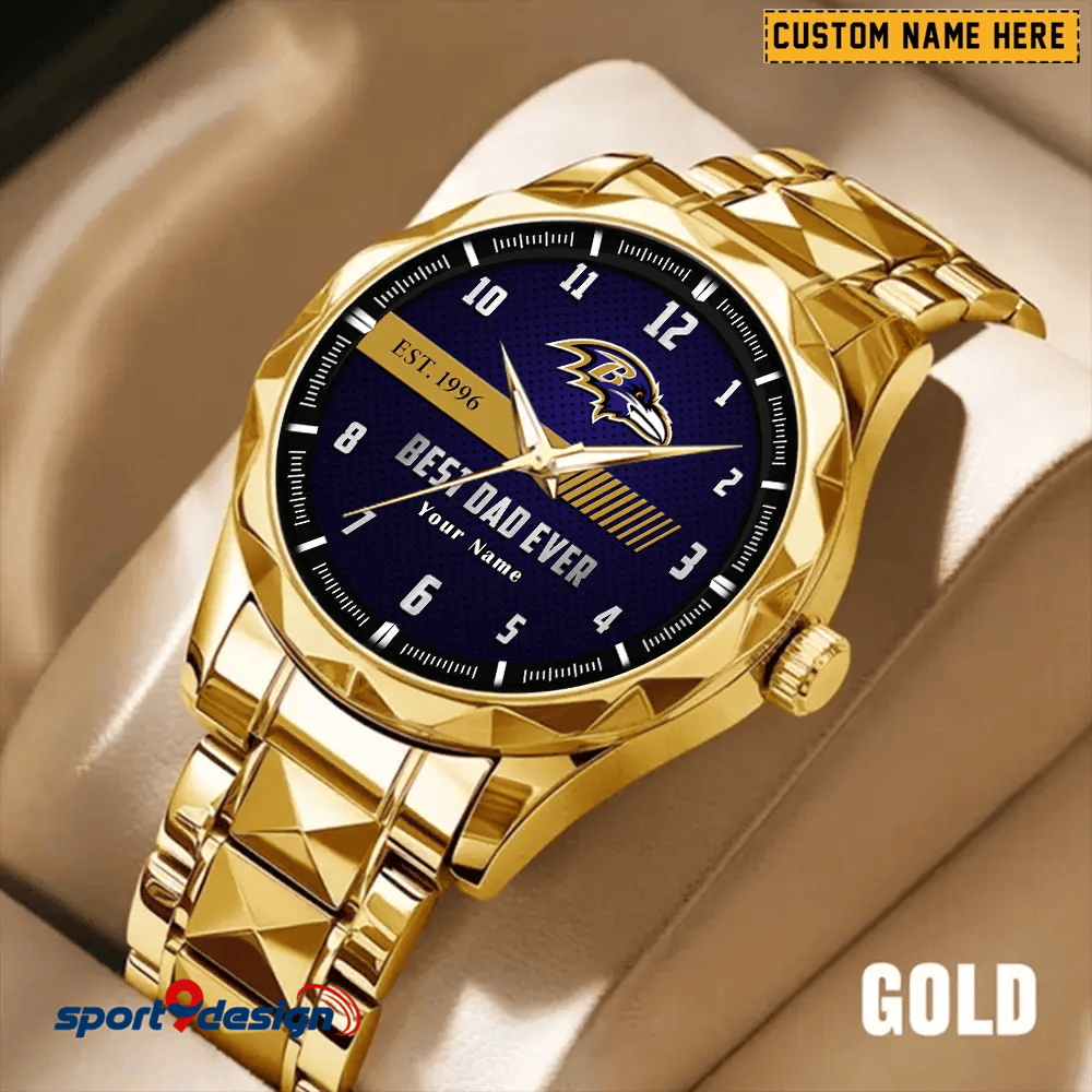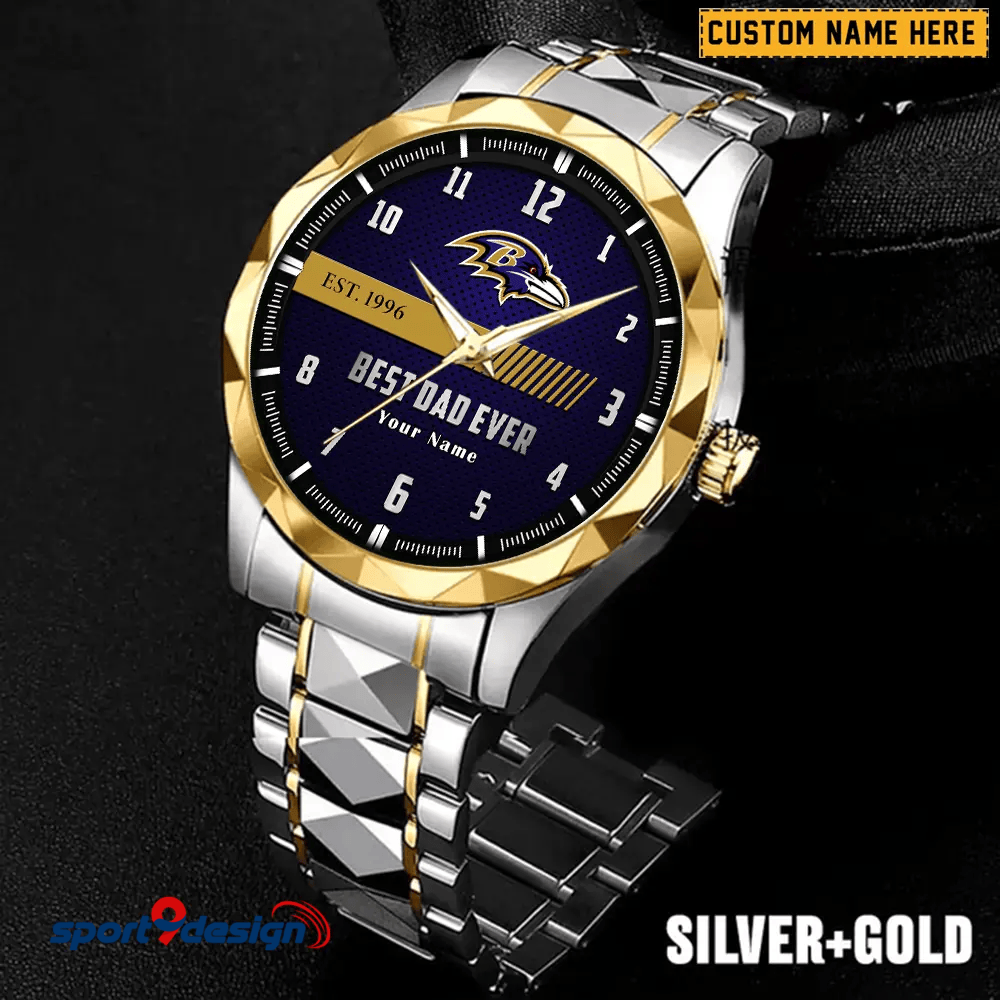 Baltimore Ravens Best Dad Ever Luxury Diamond Men Watch Father's Day Gift