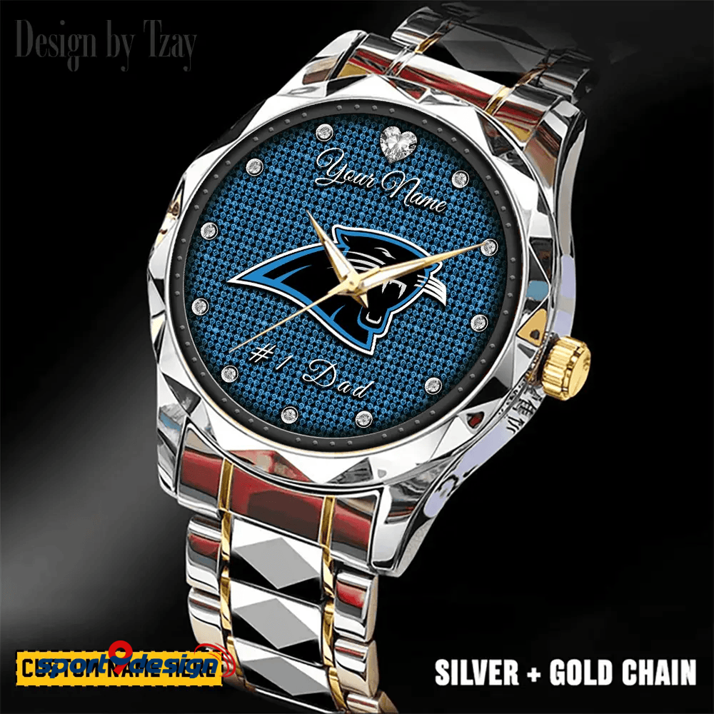 Carolina Panthers #1 Dad Luxury Diamond Men Watch Father's Day Gift