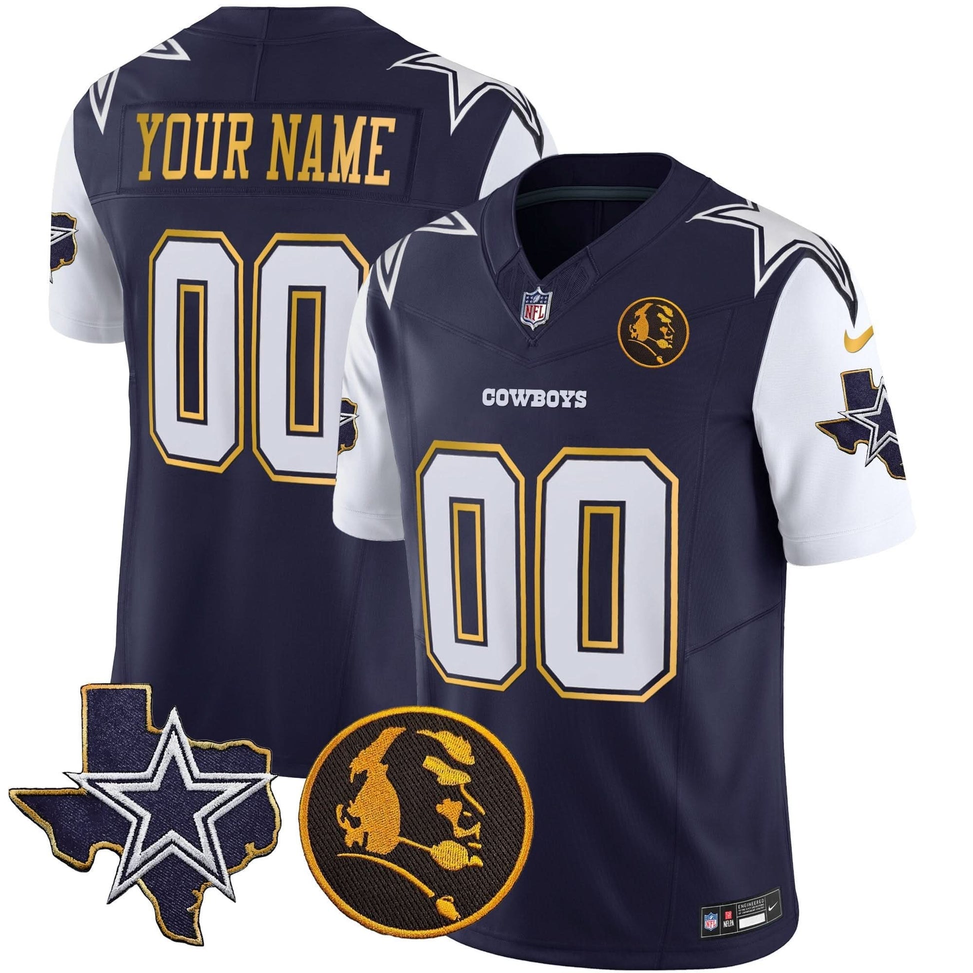 Cowboys Texas & John Madden Patch Gold Trim Vapor Custom Jersey - All Stitched
