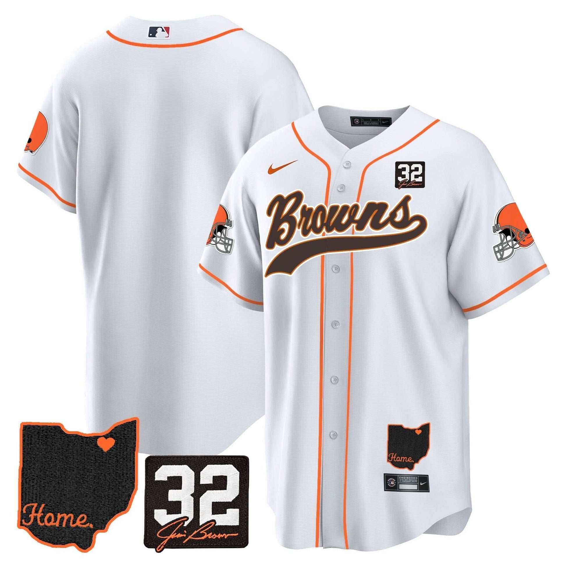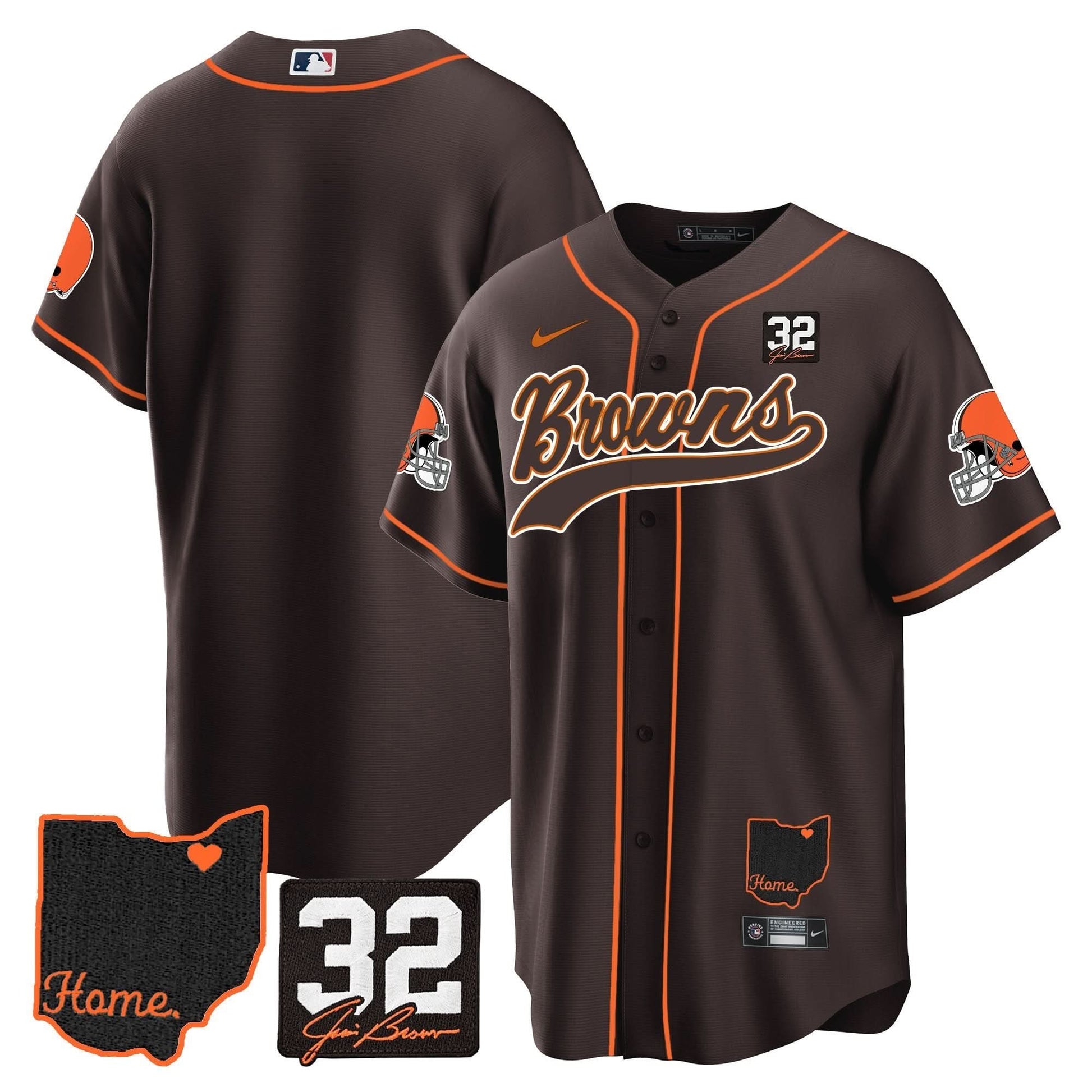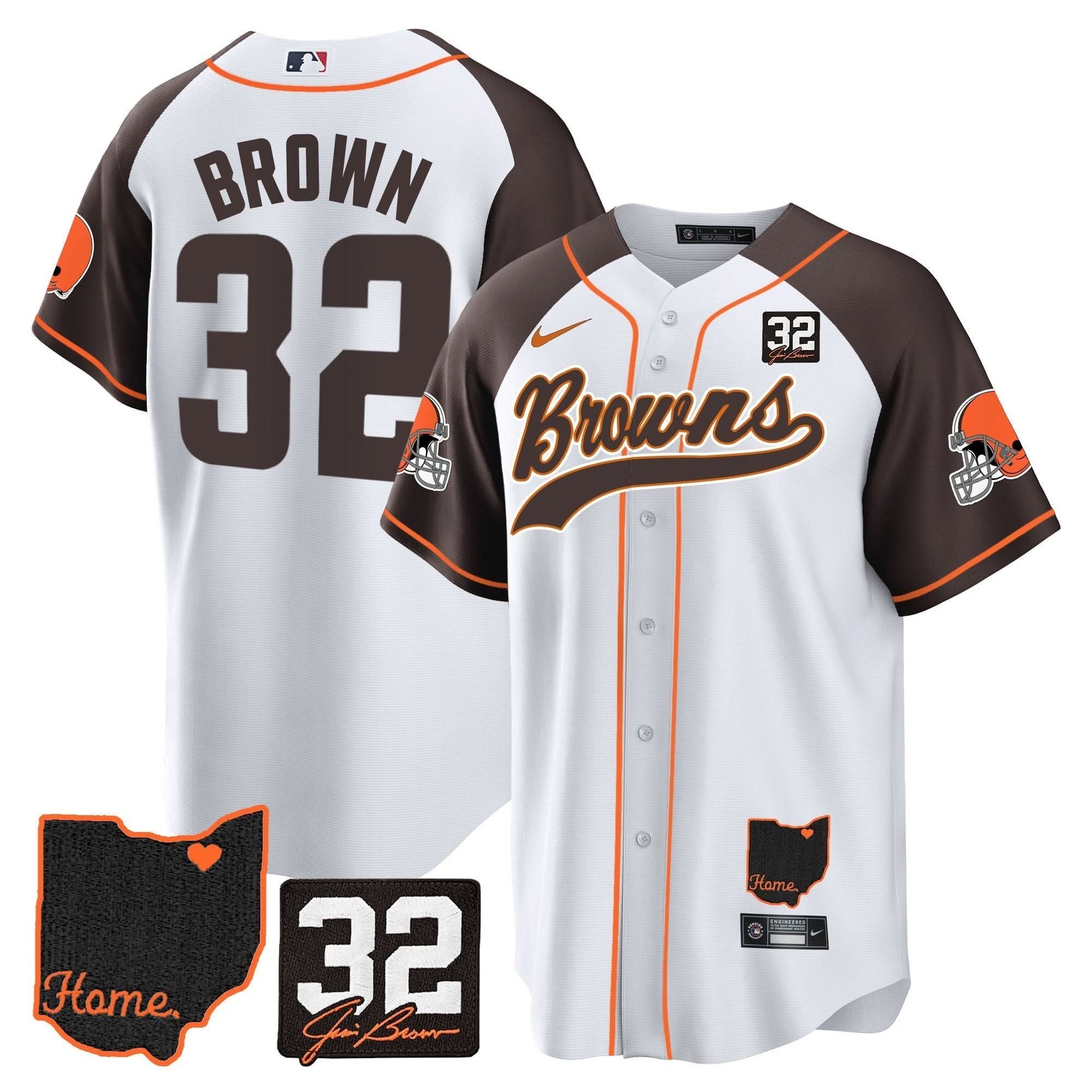 Browns #32 Jim Brown Memorial & Home Patch Baseball Jersey V2 - All Stitched