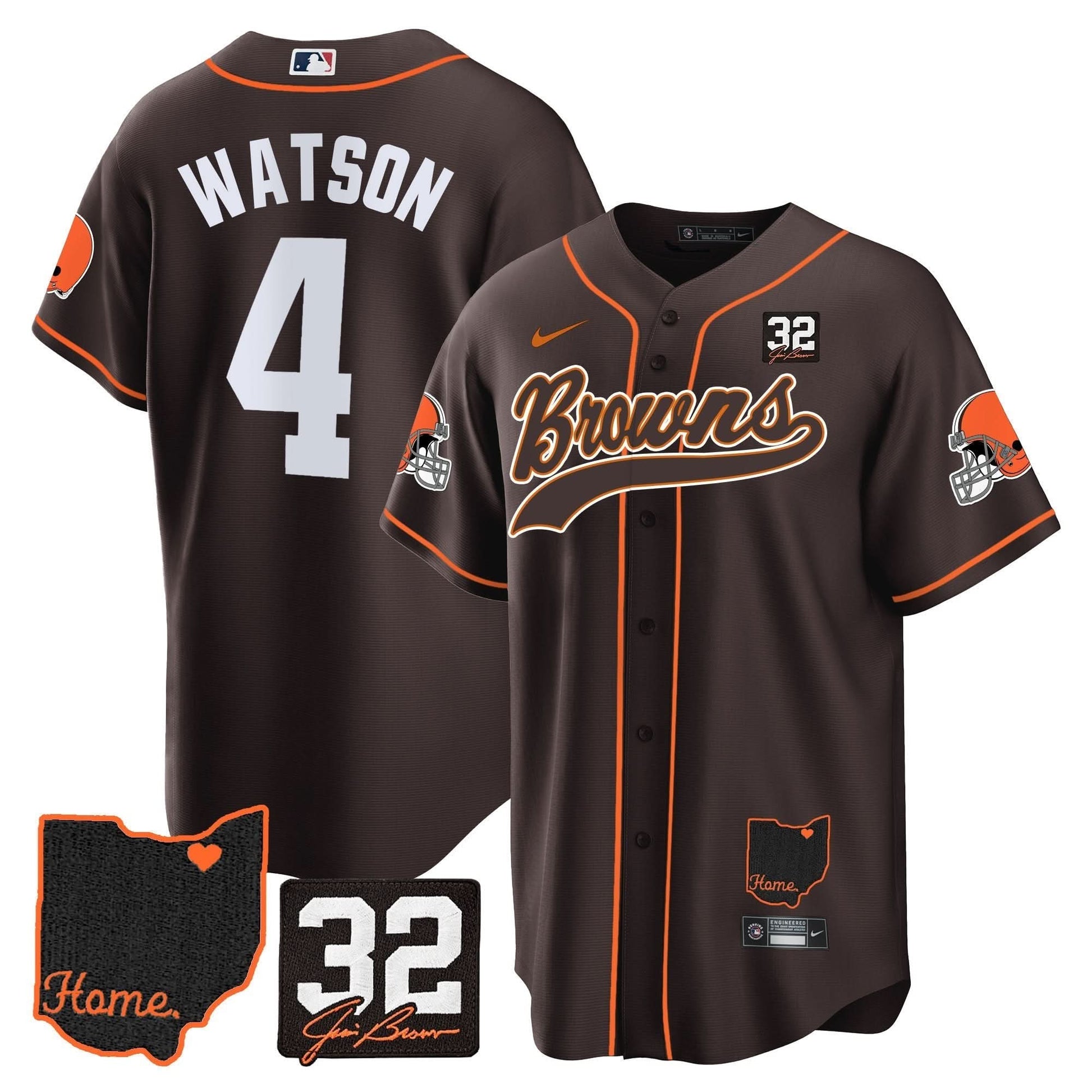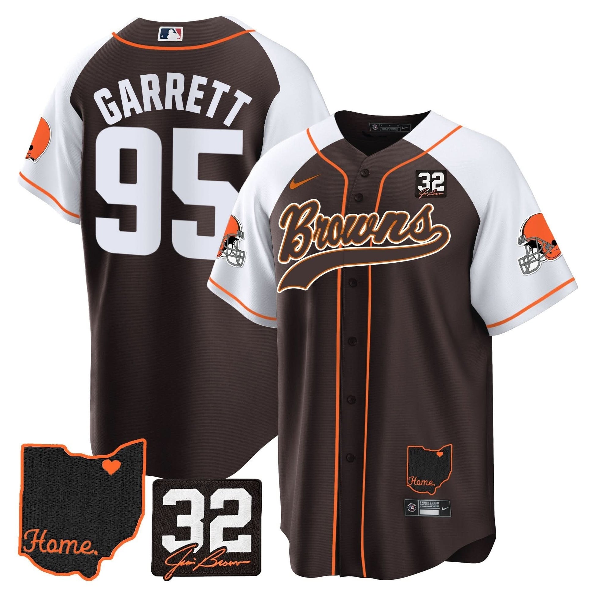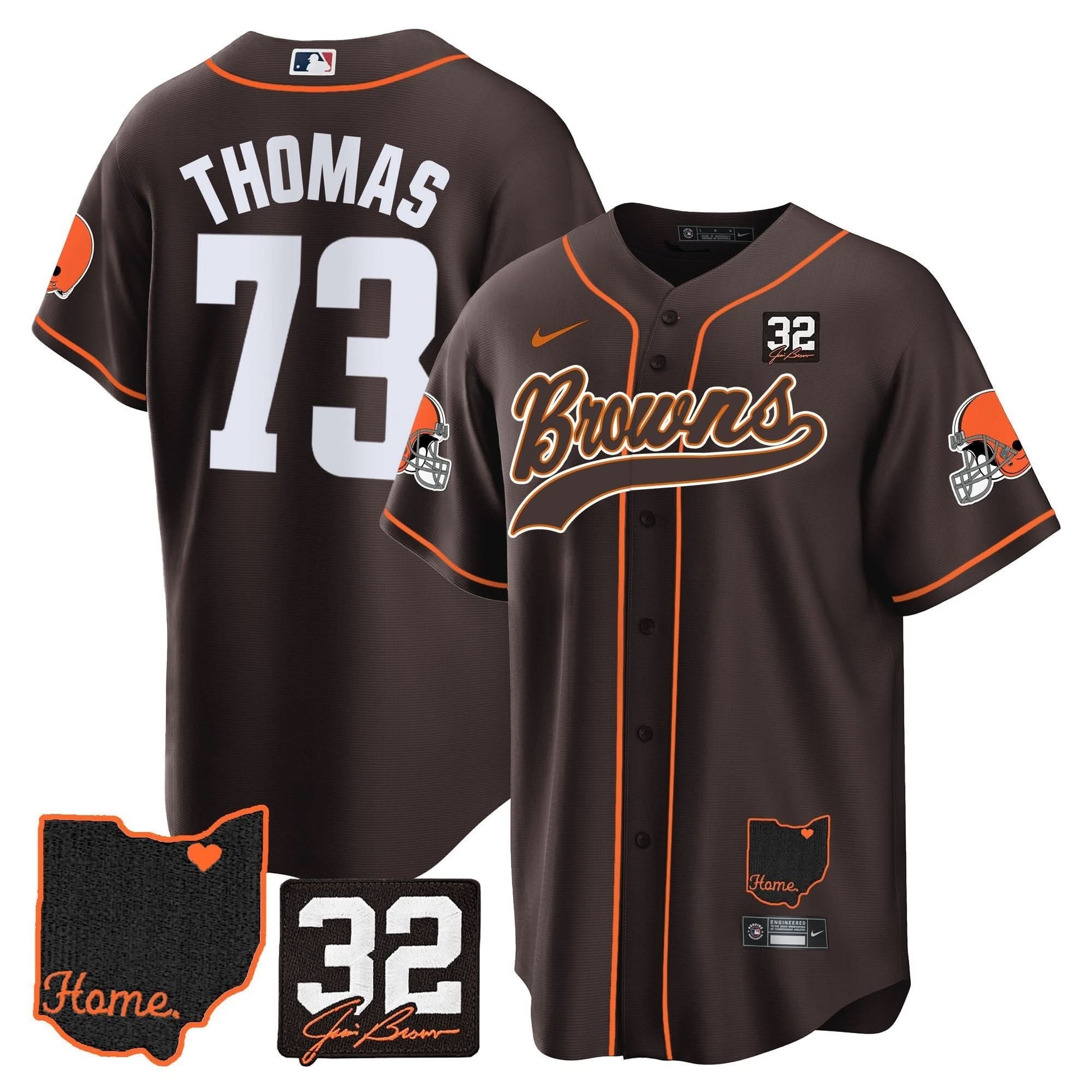 Browns #32 Jim Brown Memorial & Home Patch Baseball Jersey V2 - All Stitched