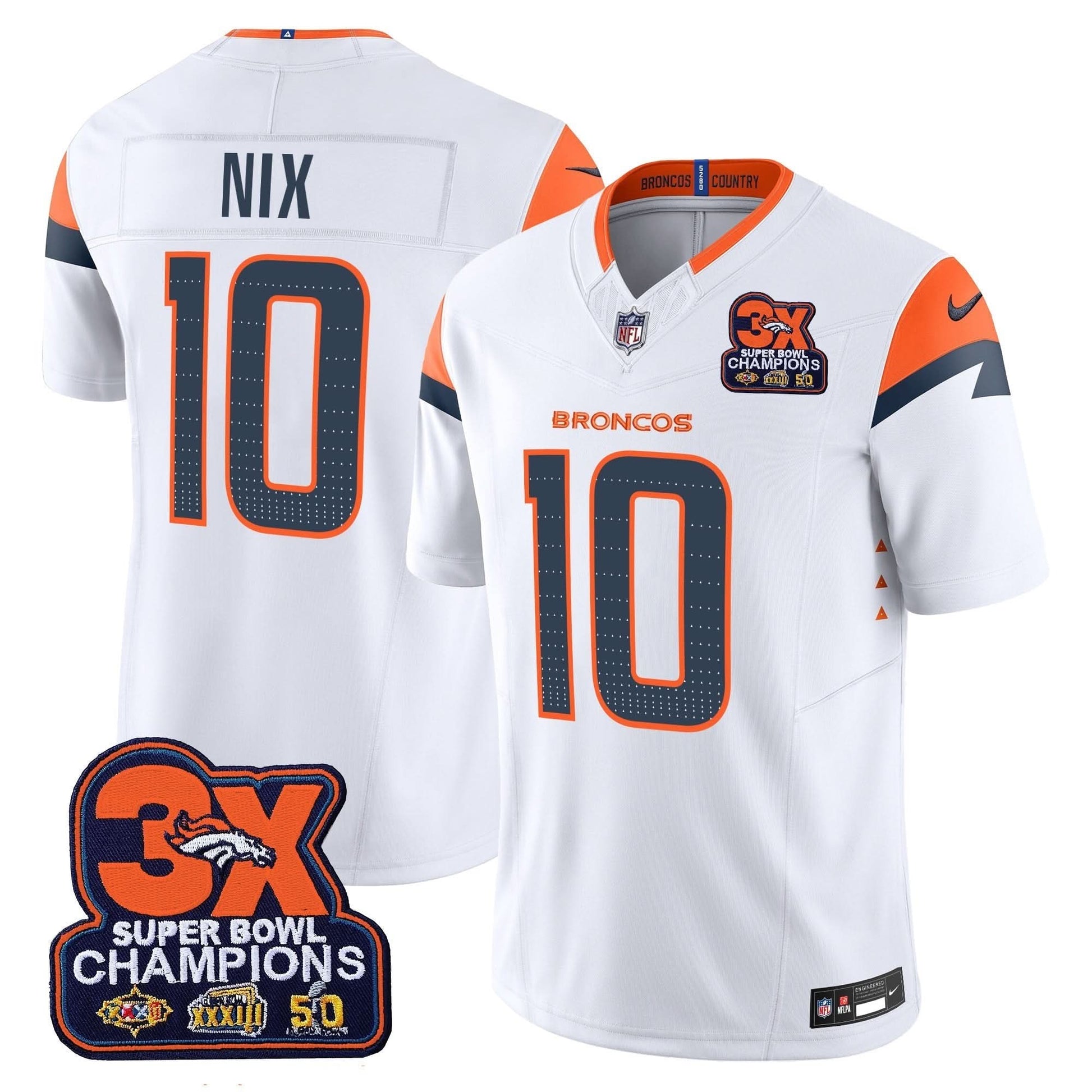 Denver Broncos 3-Time Champions Patch Vapor Limited Jersey - All Stitched