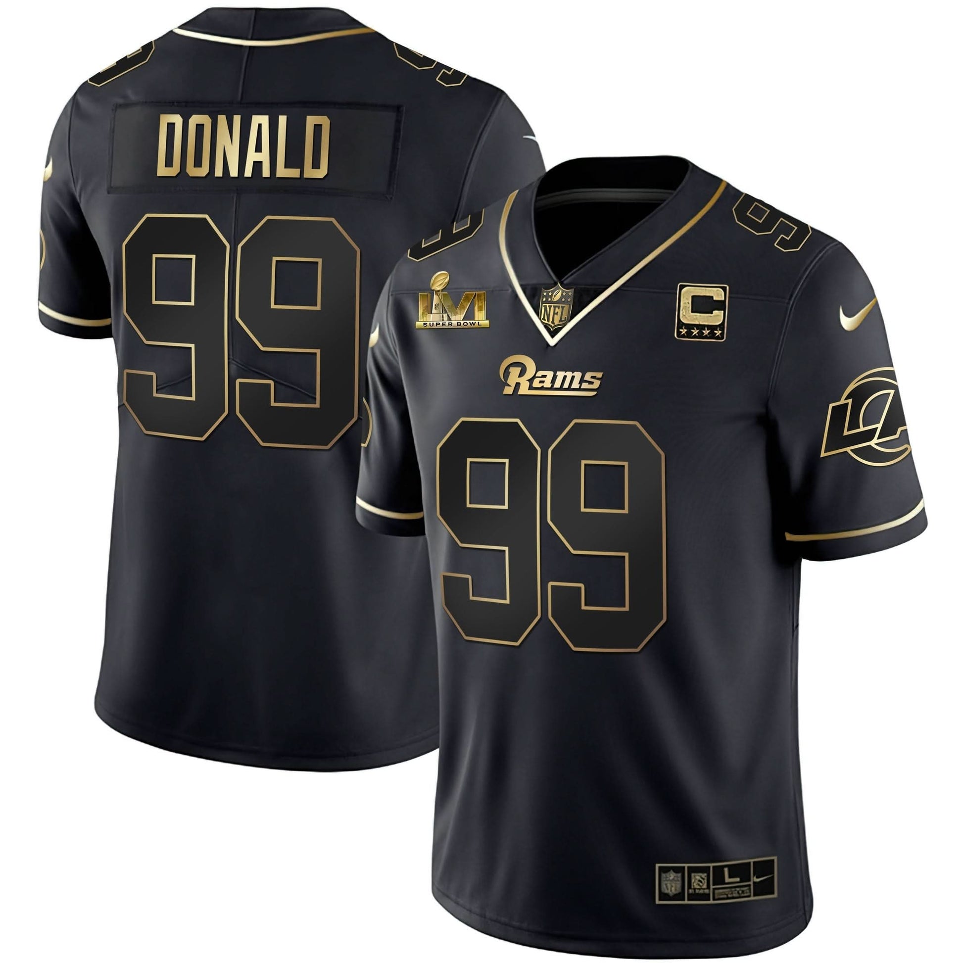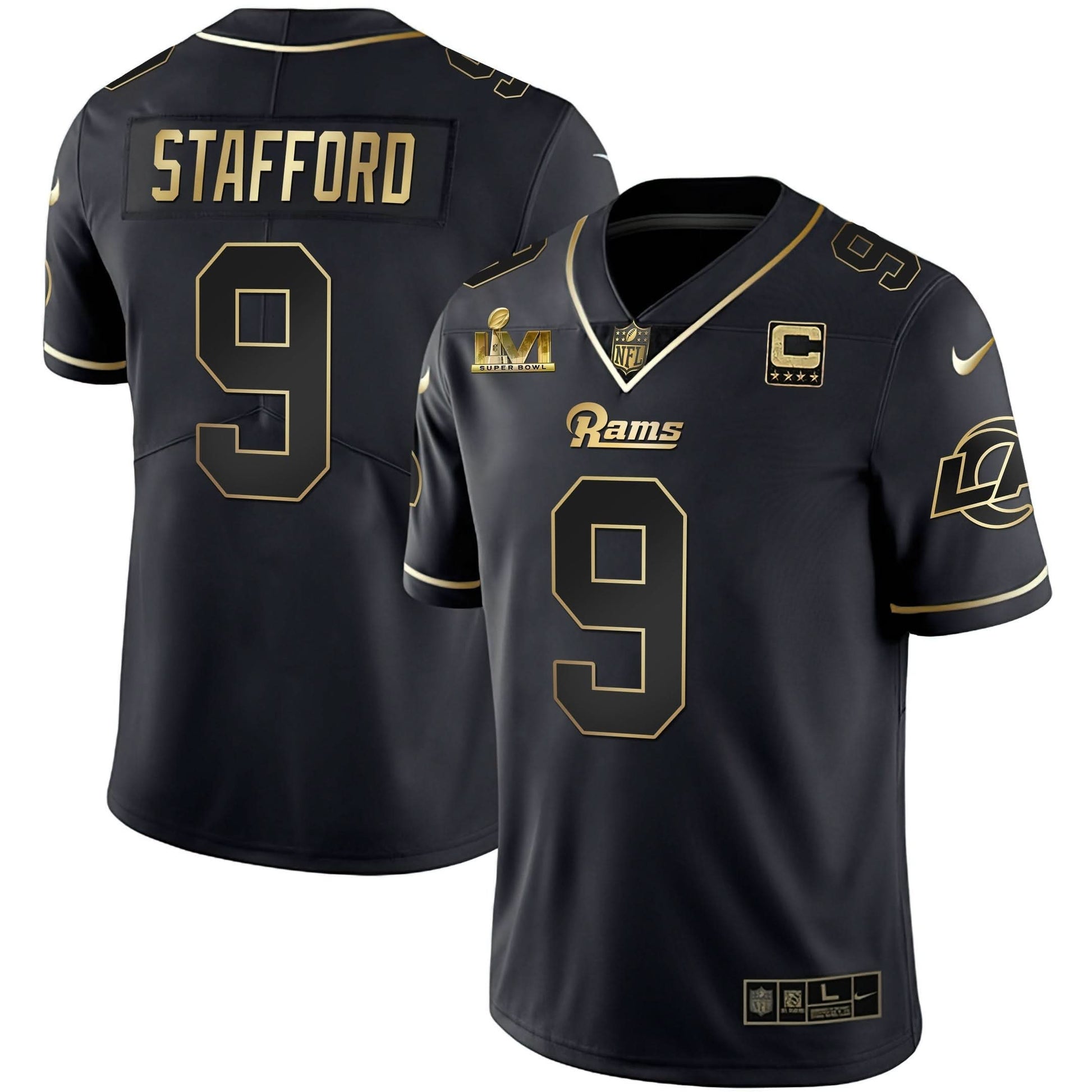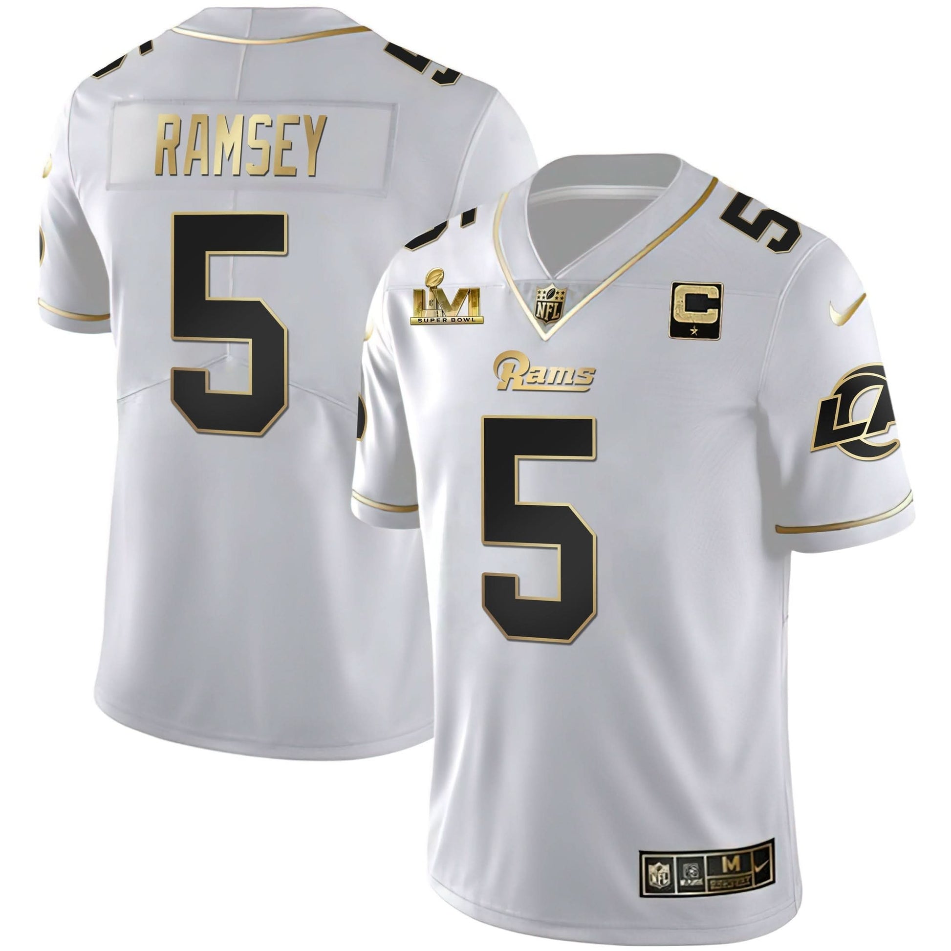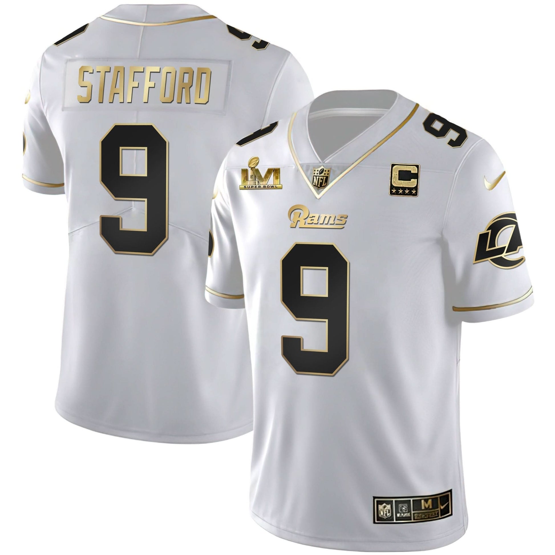Los Angeles Rams Super Bowl LVI White Gold & Black Gold Jersey - All Stitched