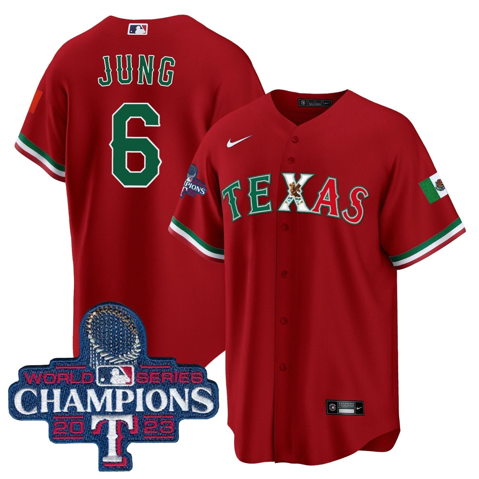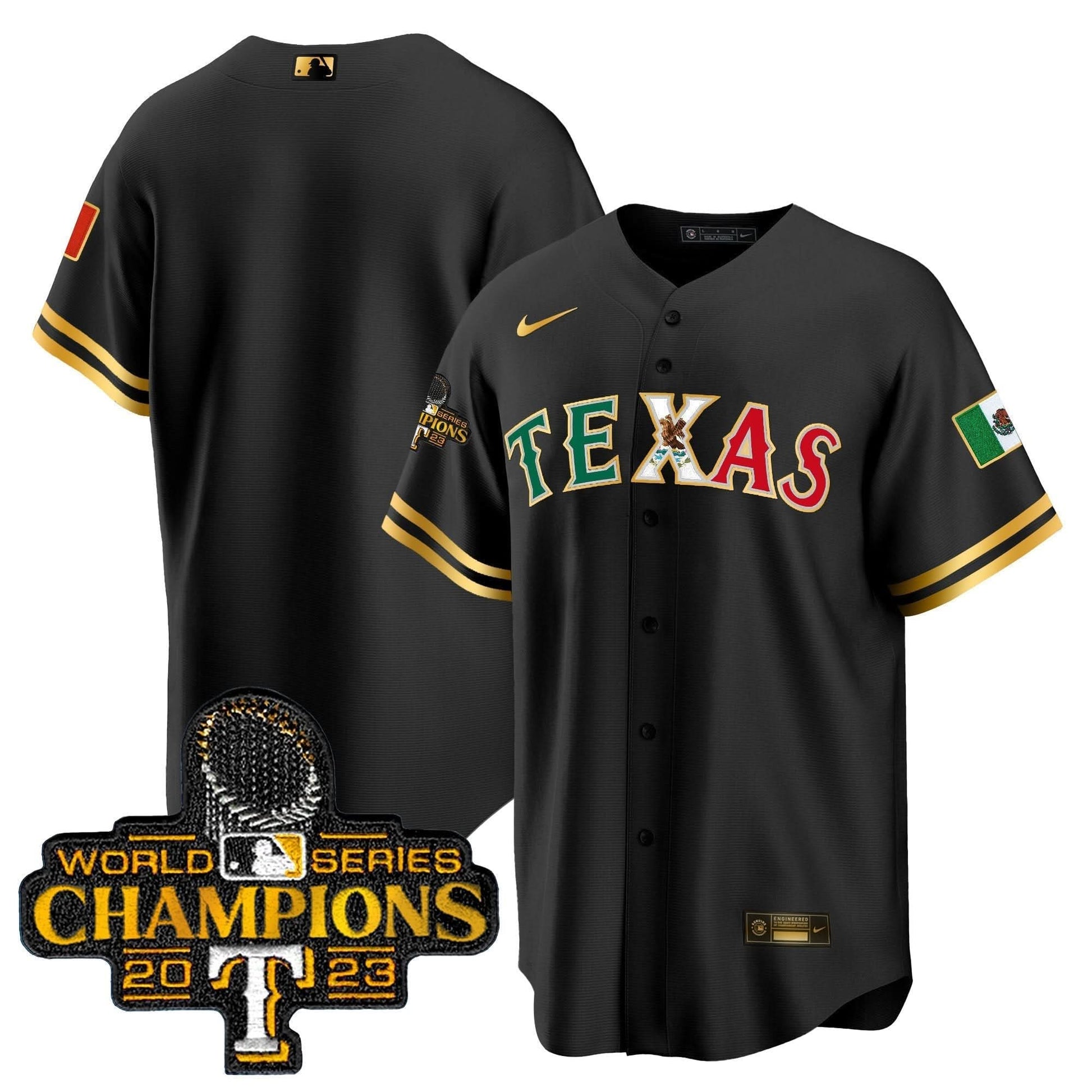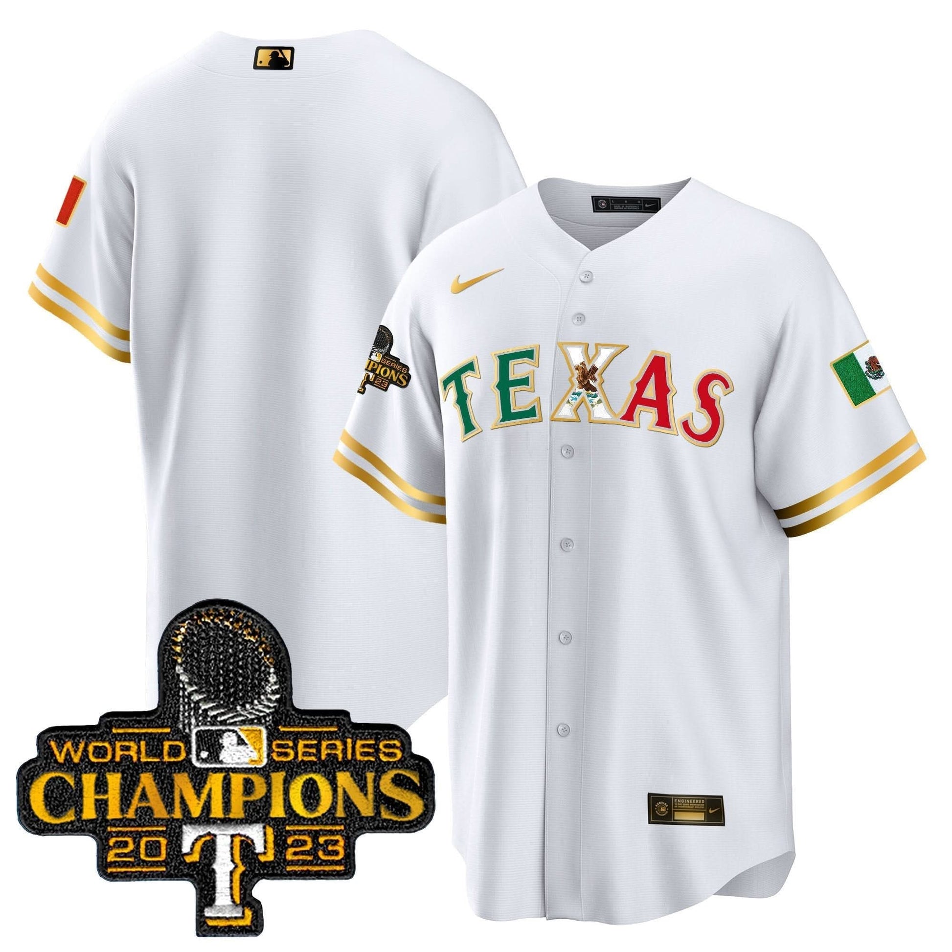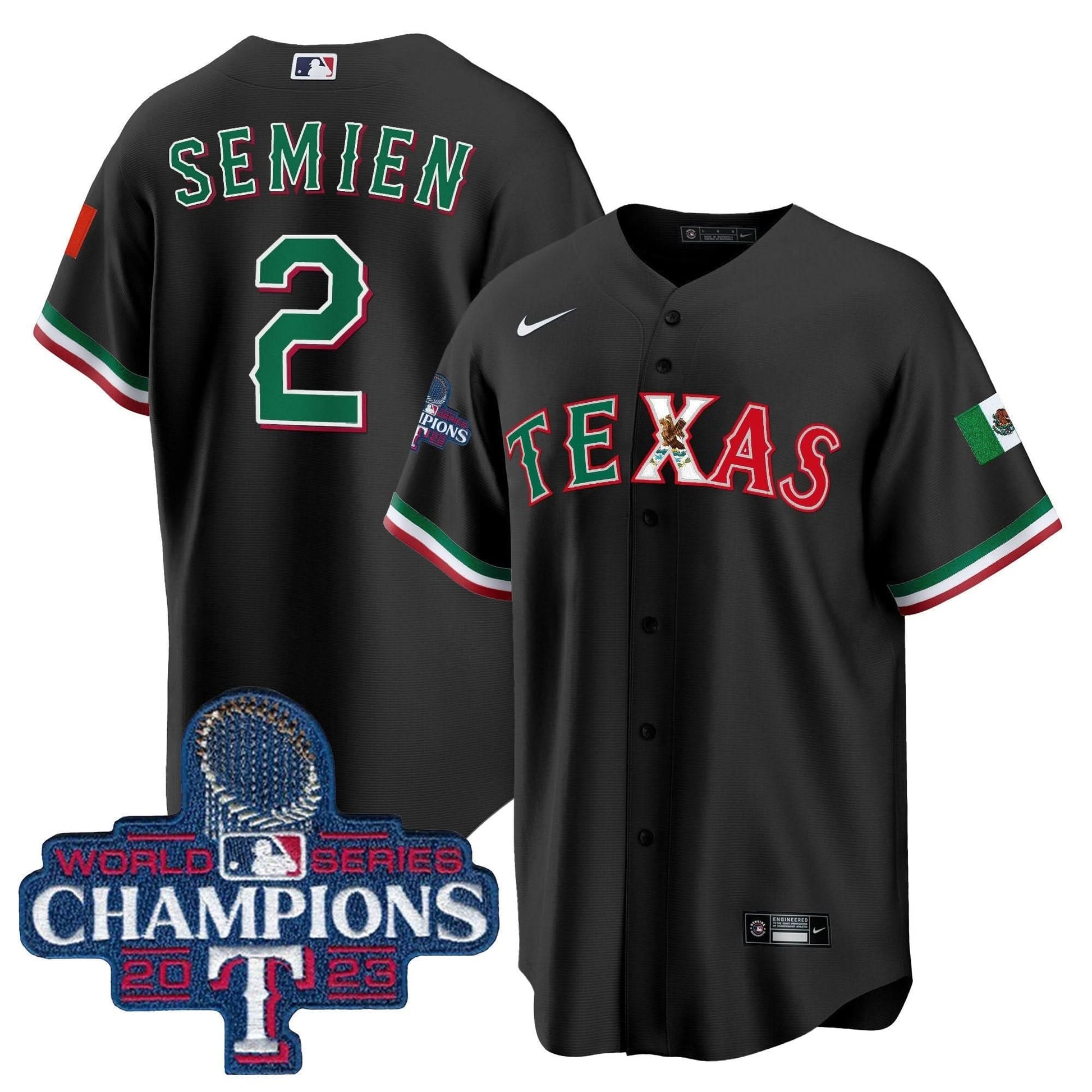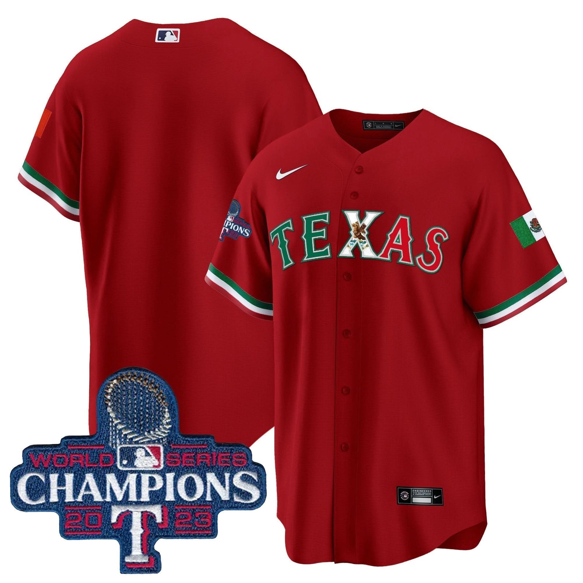Texas Rangers Mexico 2023 World Series Champions Baseball Jersey - All Stitched