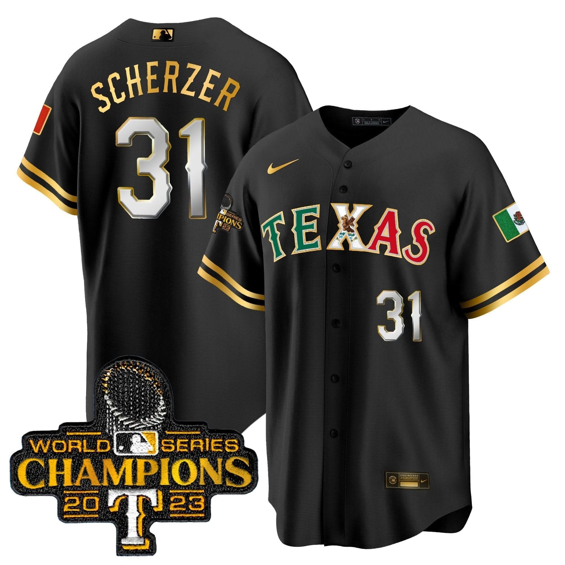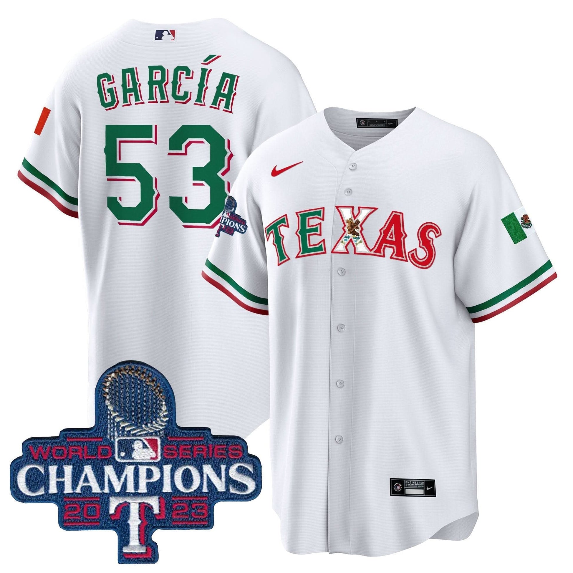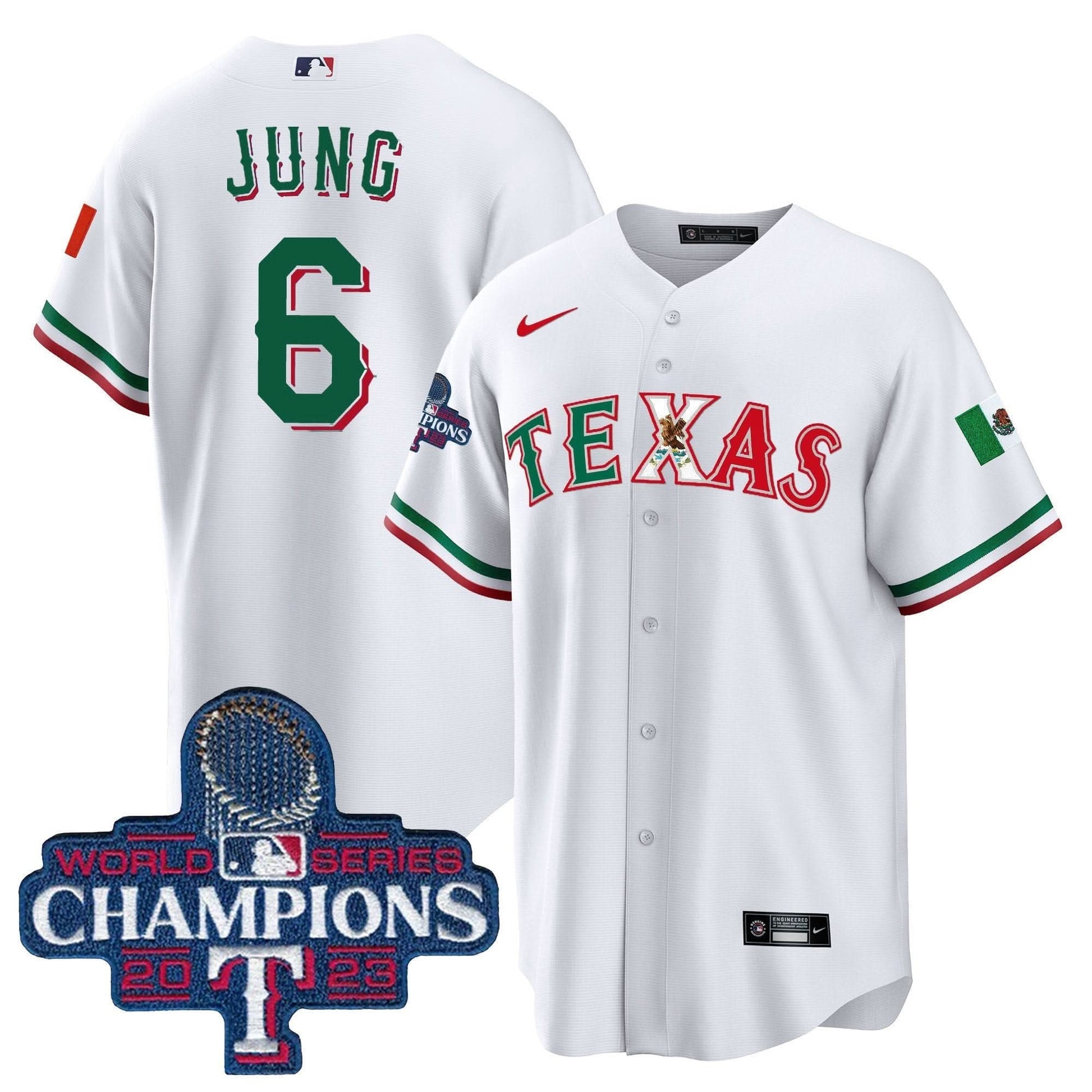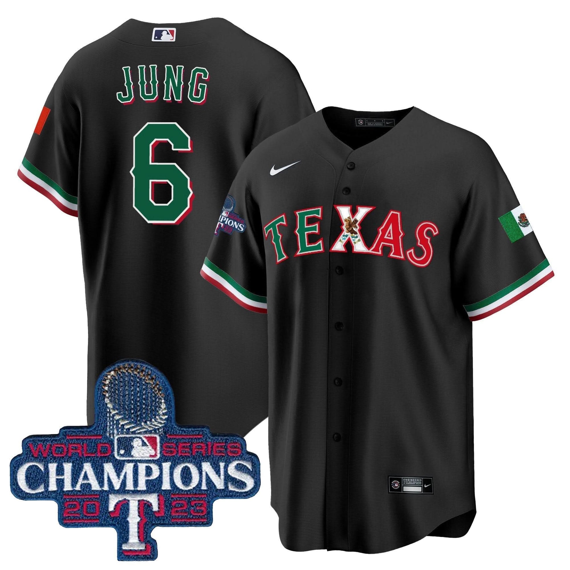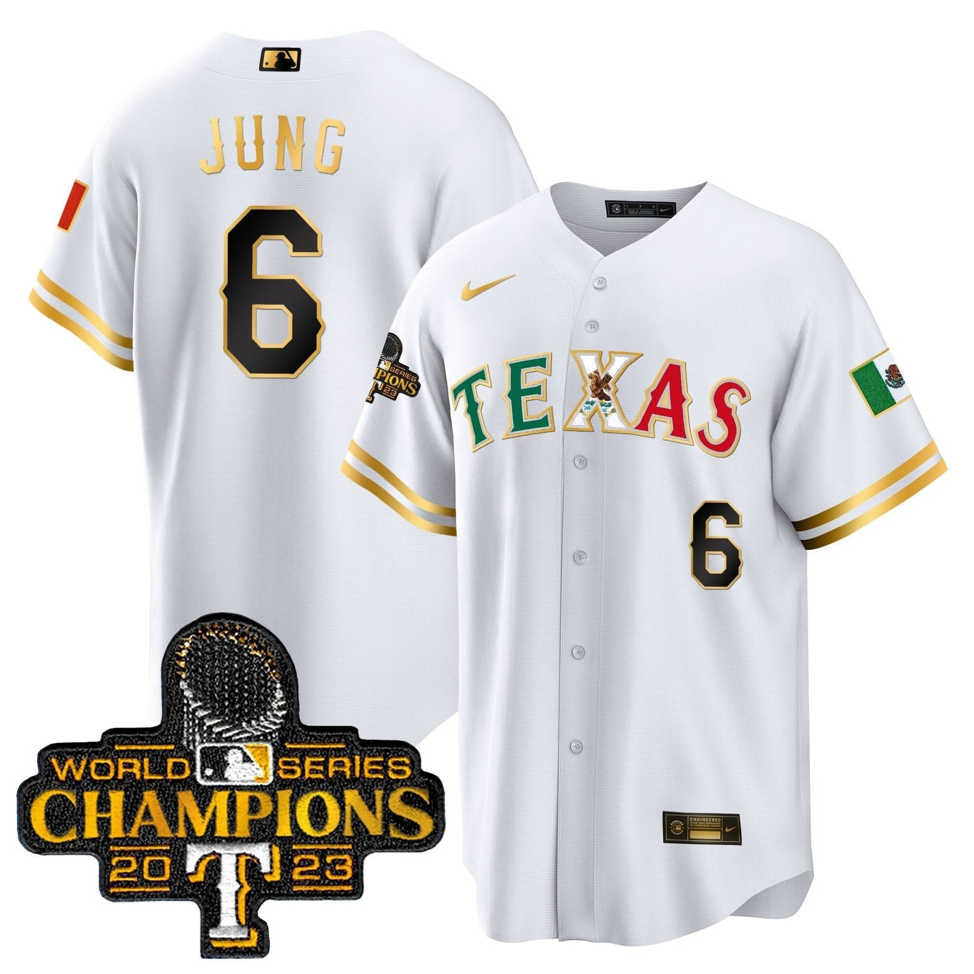 Texas Rangers Mexico 2023 World Series Champions Baseball Jersey - All Stitched