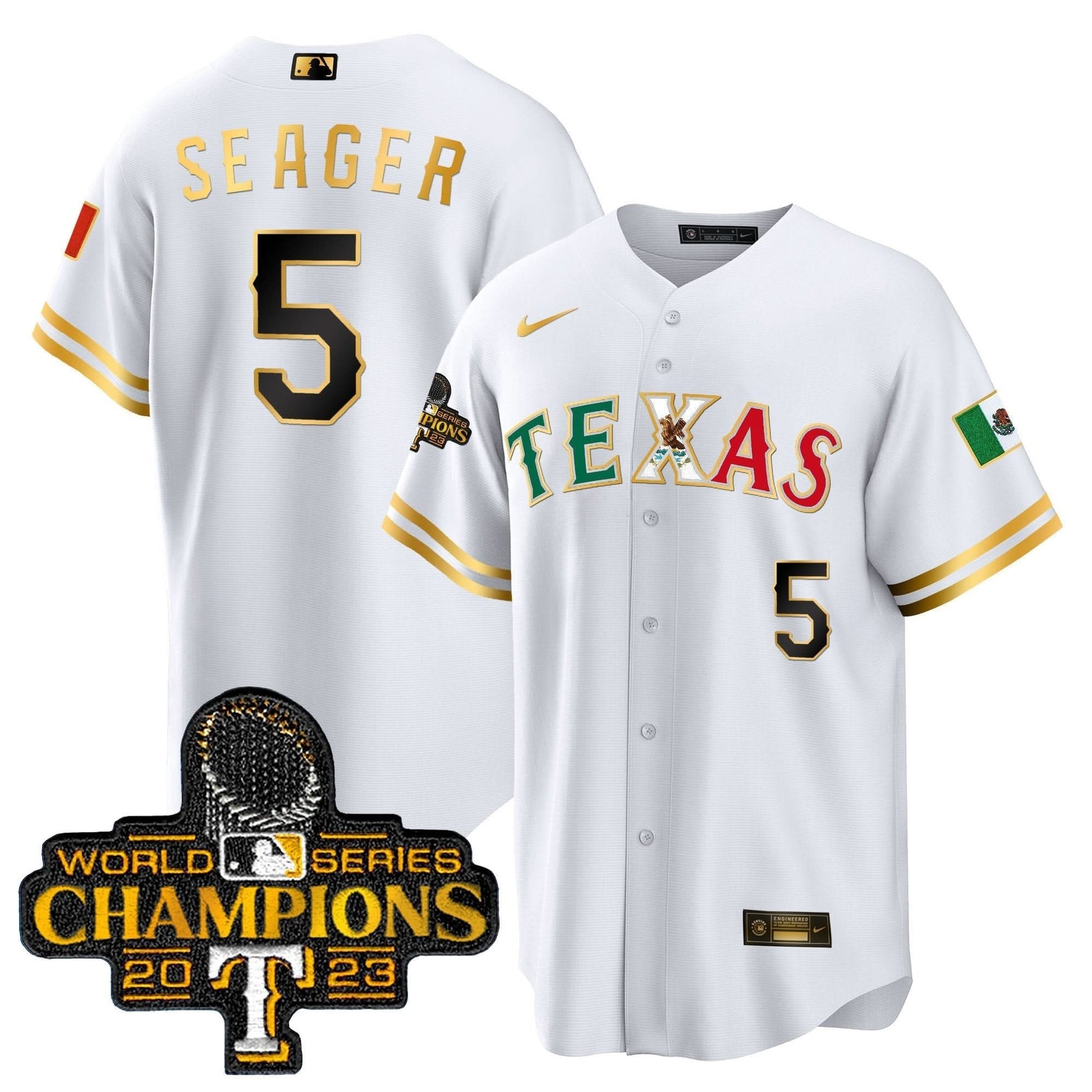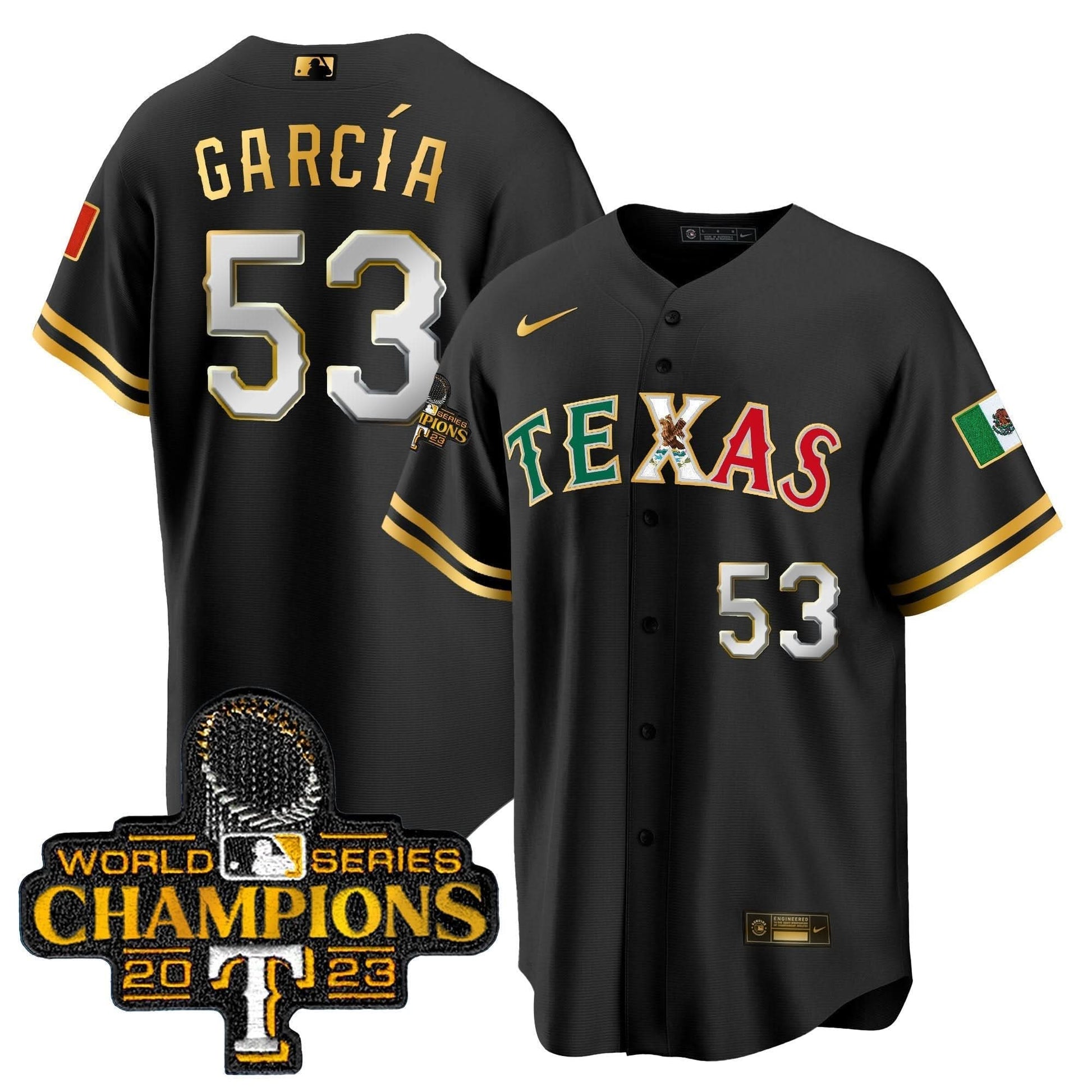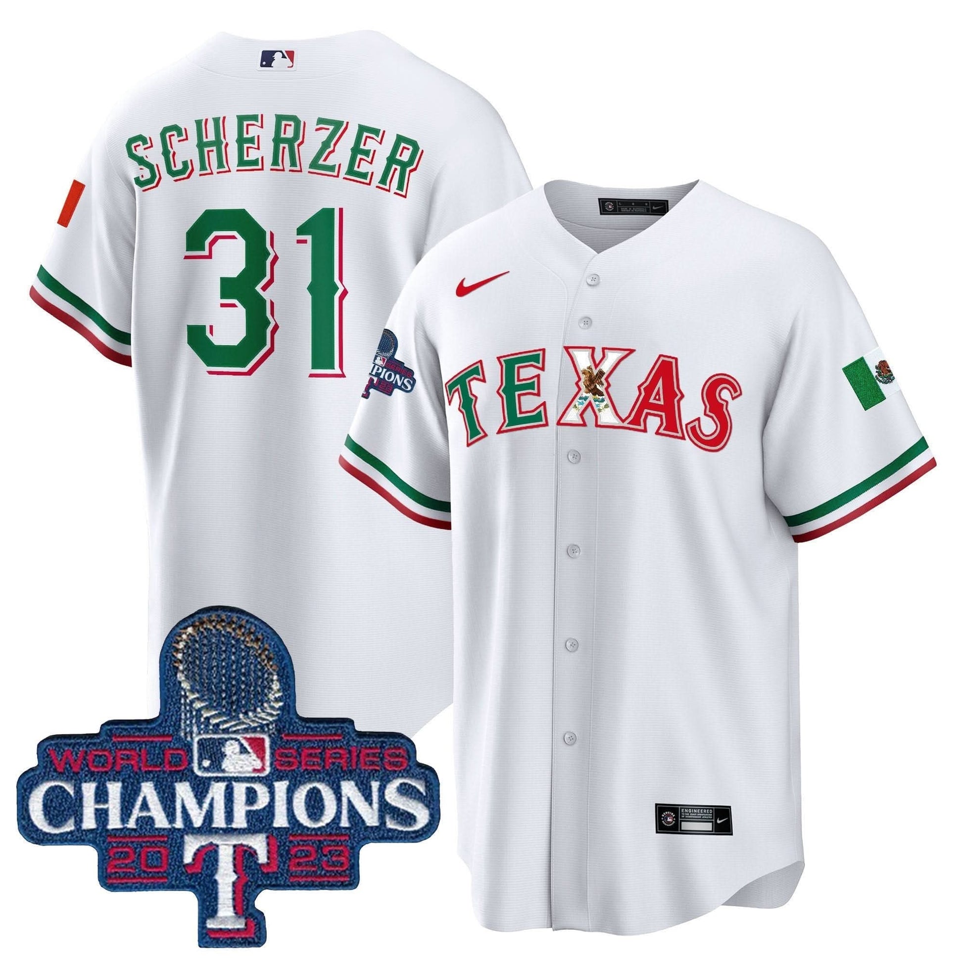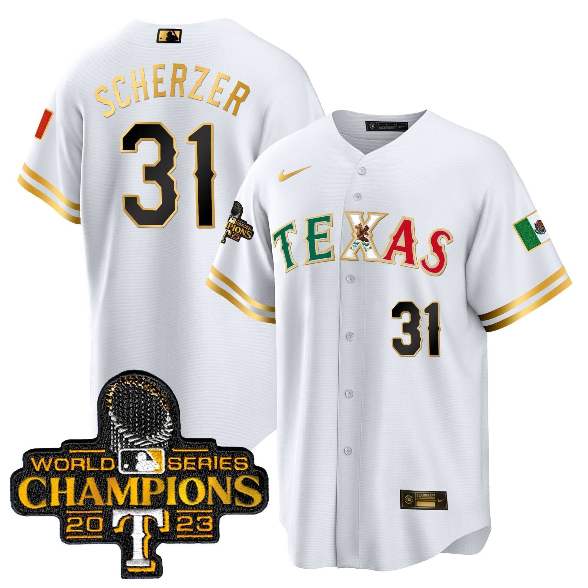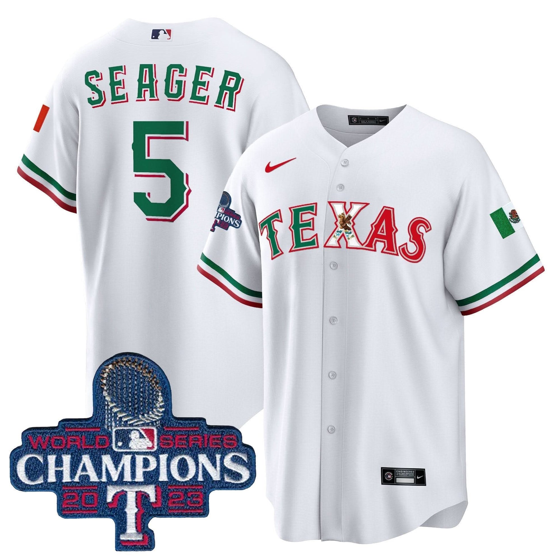 Texas Rangers Mexico 2023 World Series Champions Baseball Jersey - All Stitched