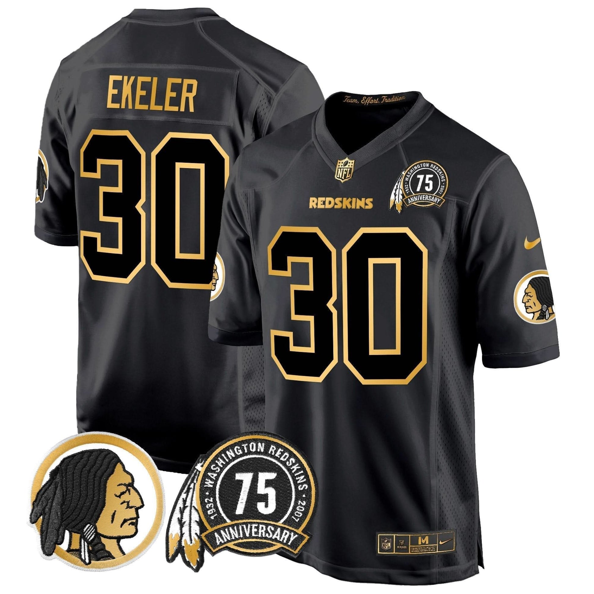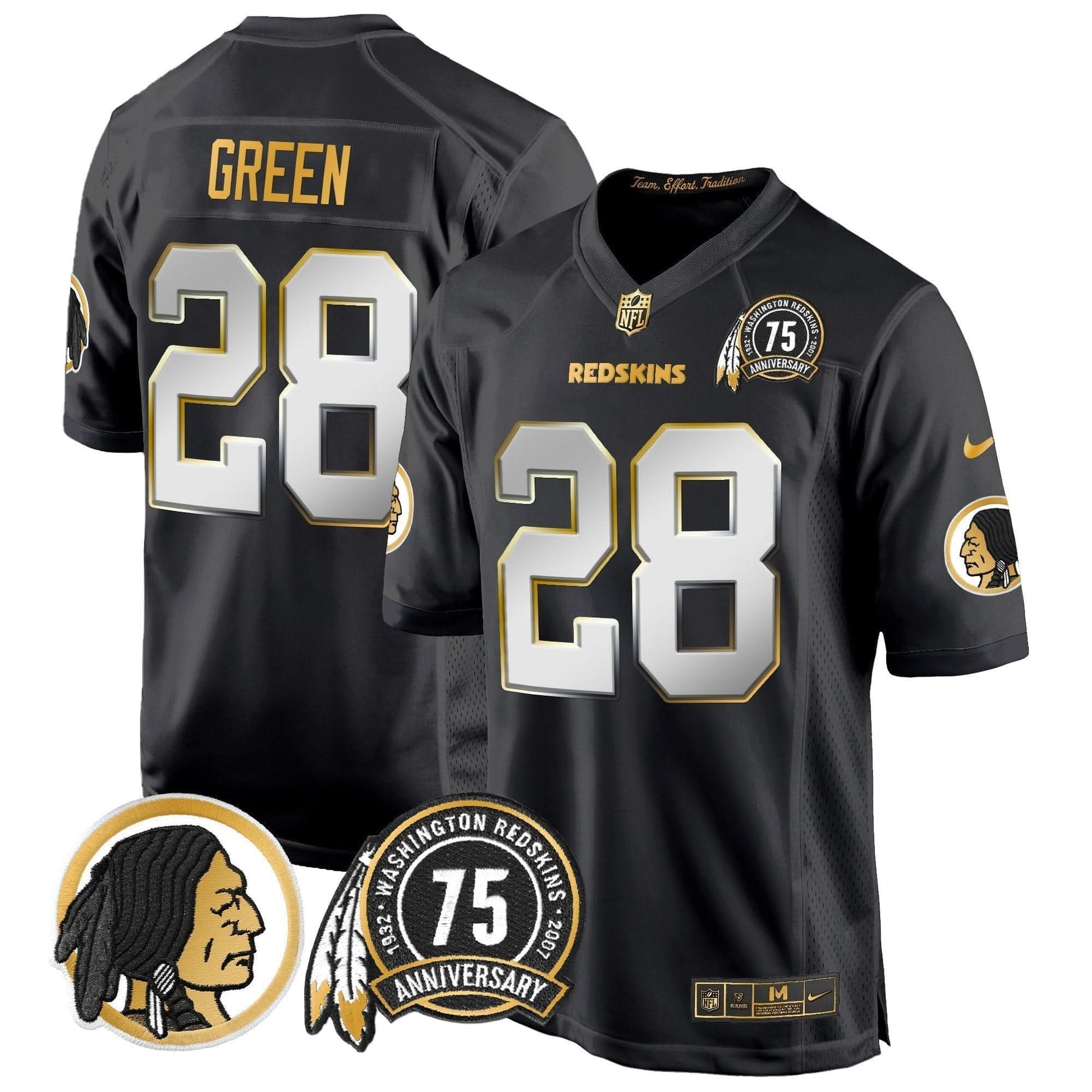 Washington Redskins 75th Patch Throwback Gold Game Jersey - All Stitched