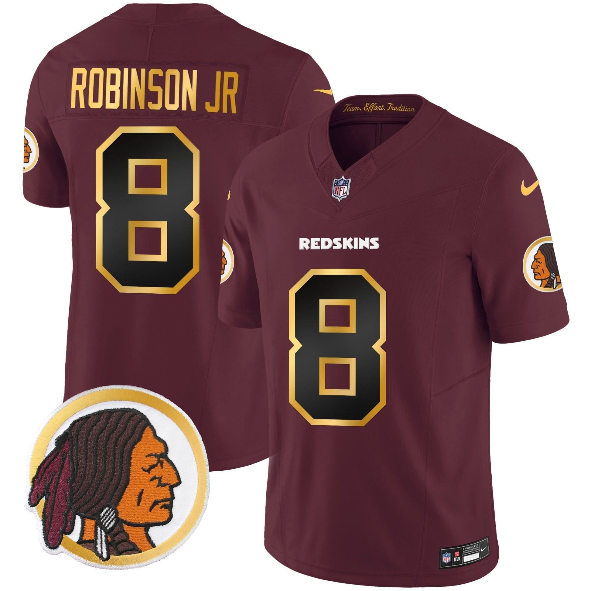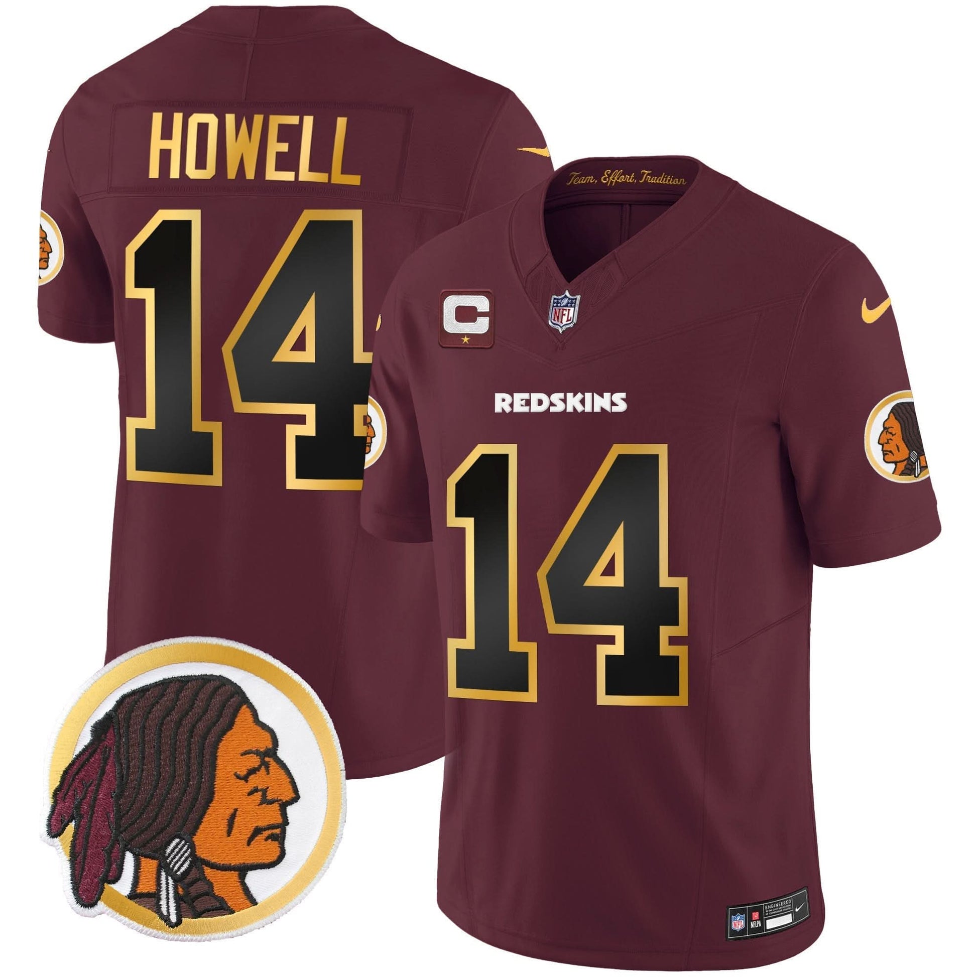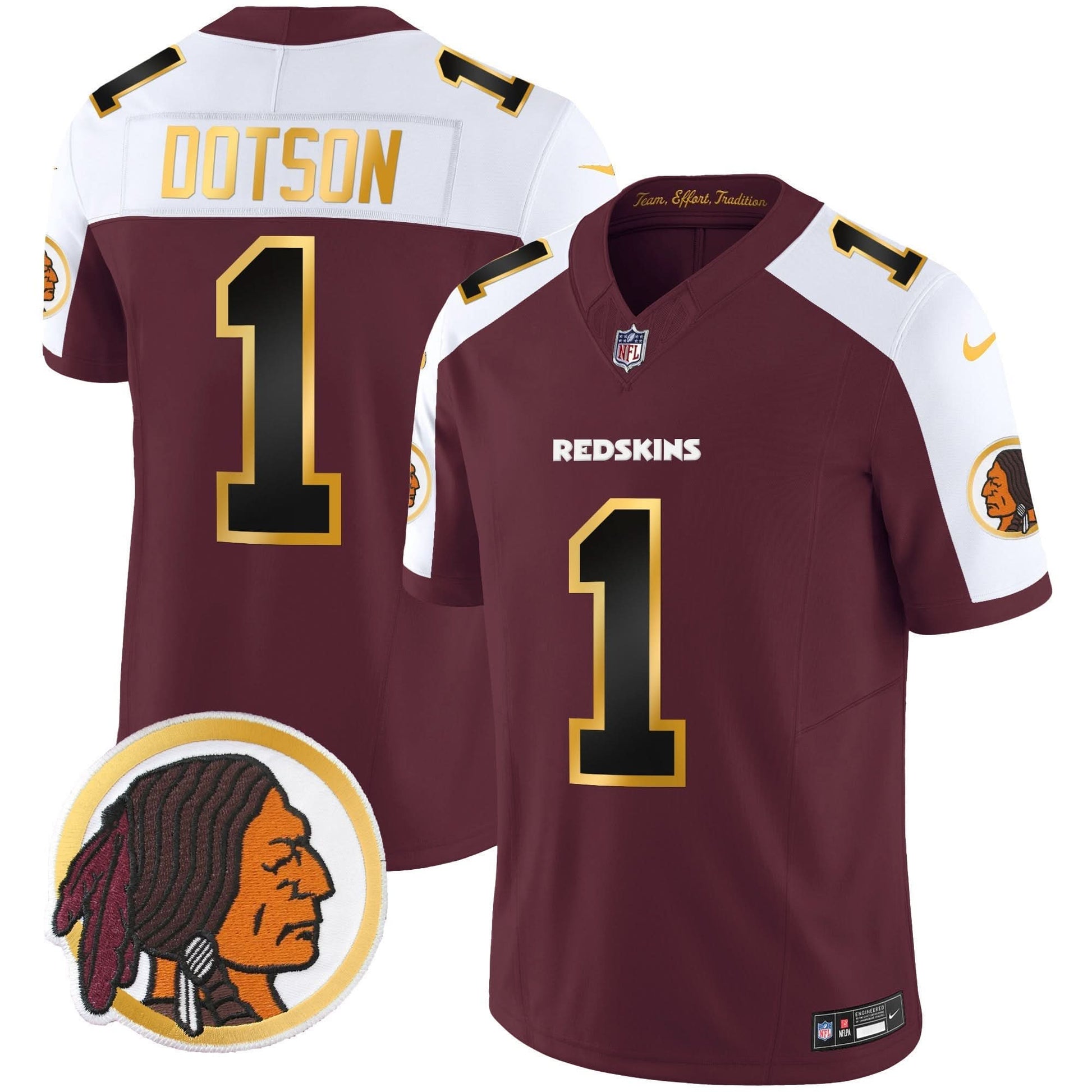Washington Redskins Throwback Vapor Gold Trim Jersey - All Stitched