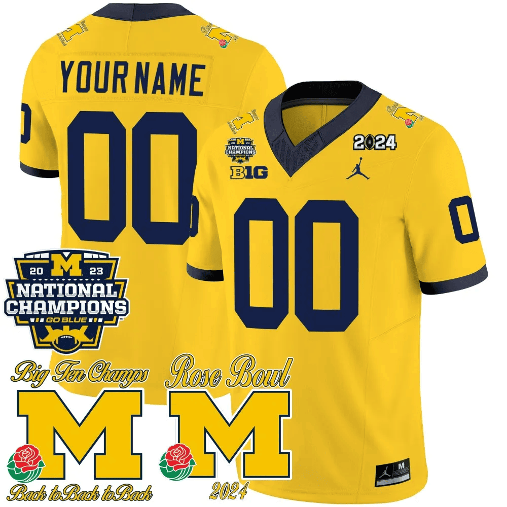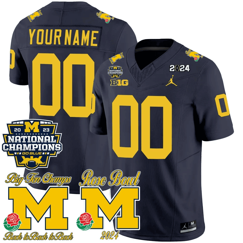 Michigan Wolverines 2023 National Champions & Rose Bowl Patch Vapor Custom Jersey- All Stitched