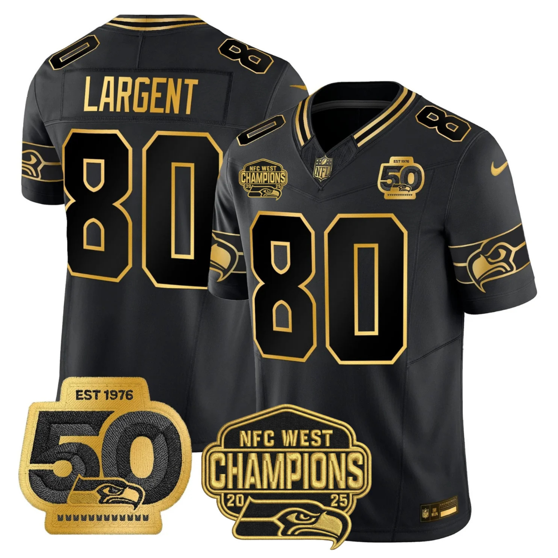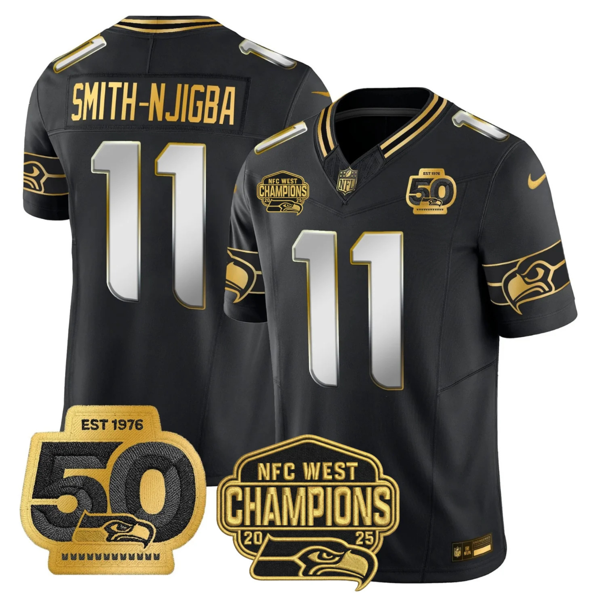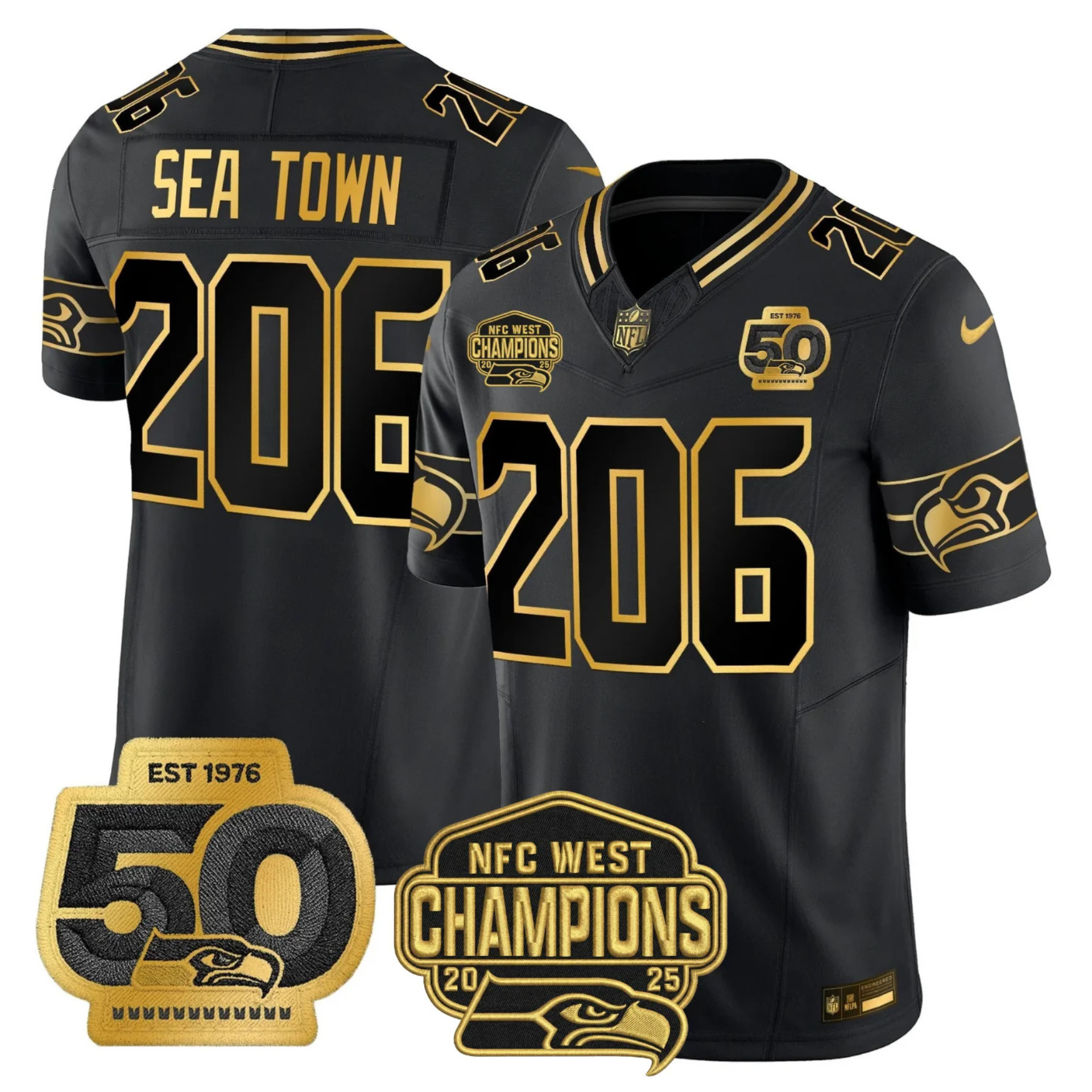 SEA 50th & NFC West Champions Patch Patch Gold Vapor Limited Jersey - All Stitched