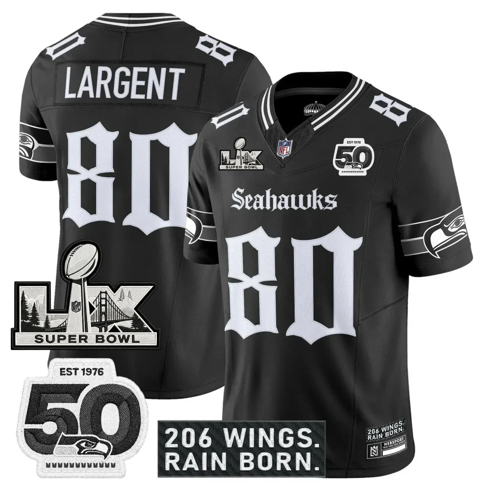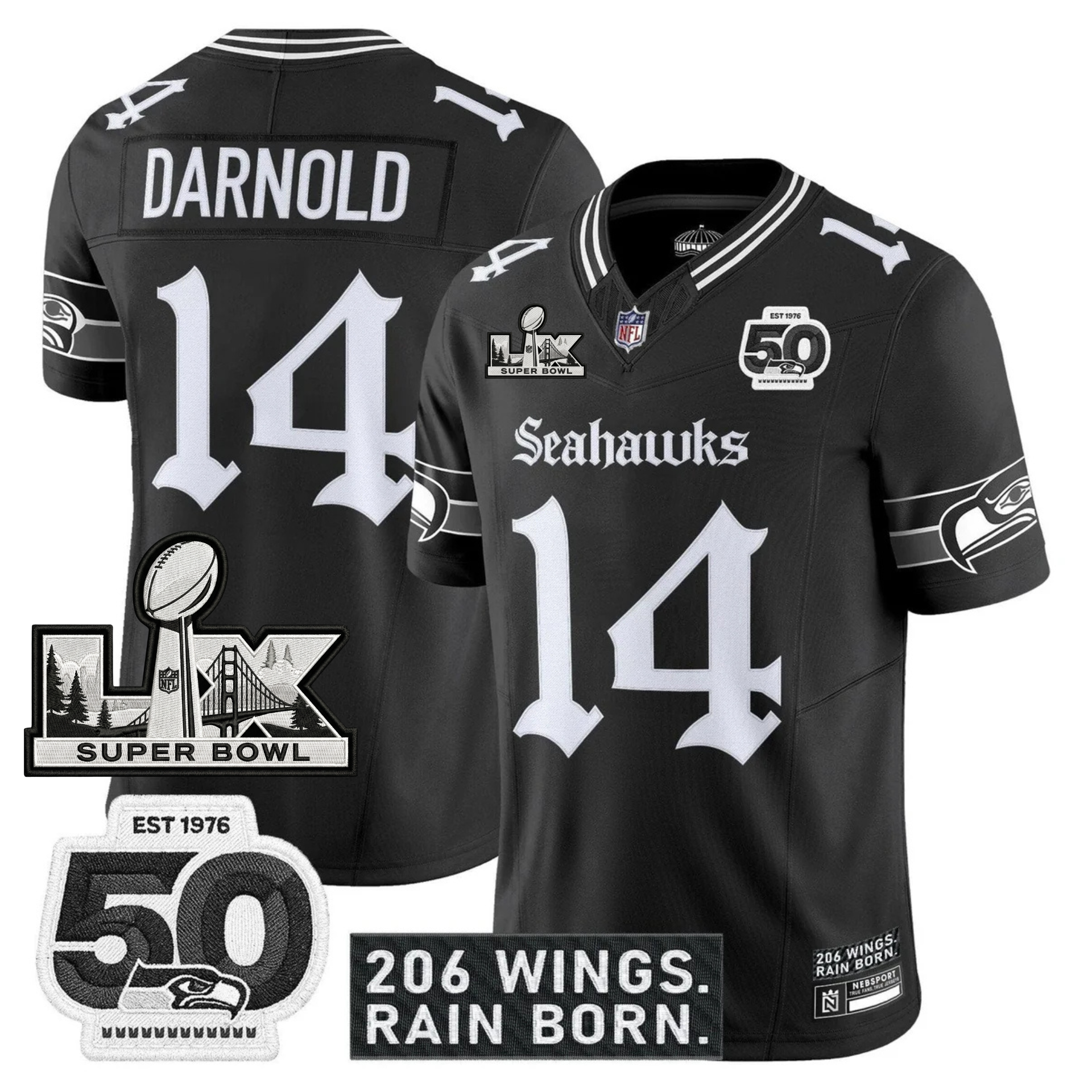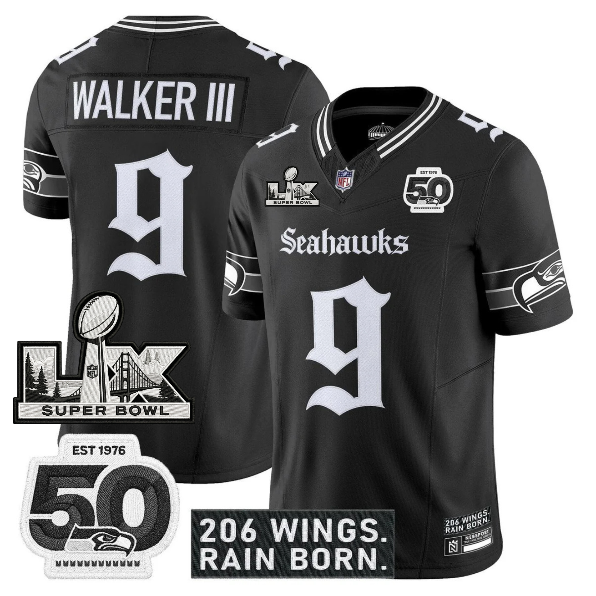 SEA 'Gothic Rain City Shadows Edition' Vapor Jersey - NFC Champions Patch - All Stitched