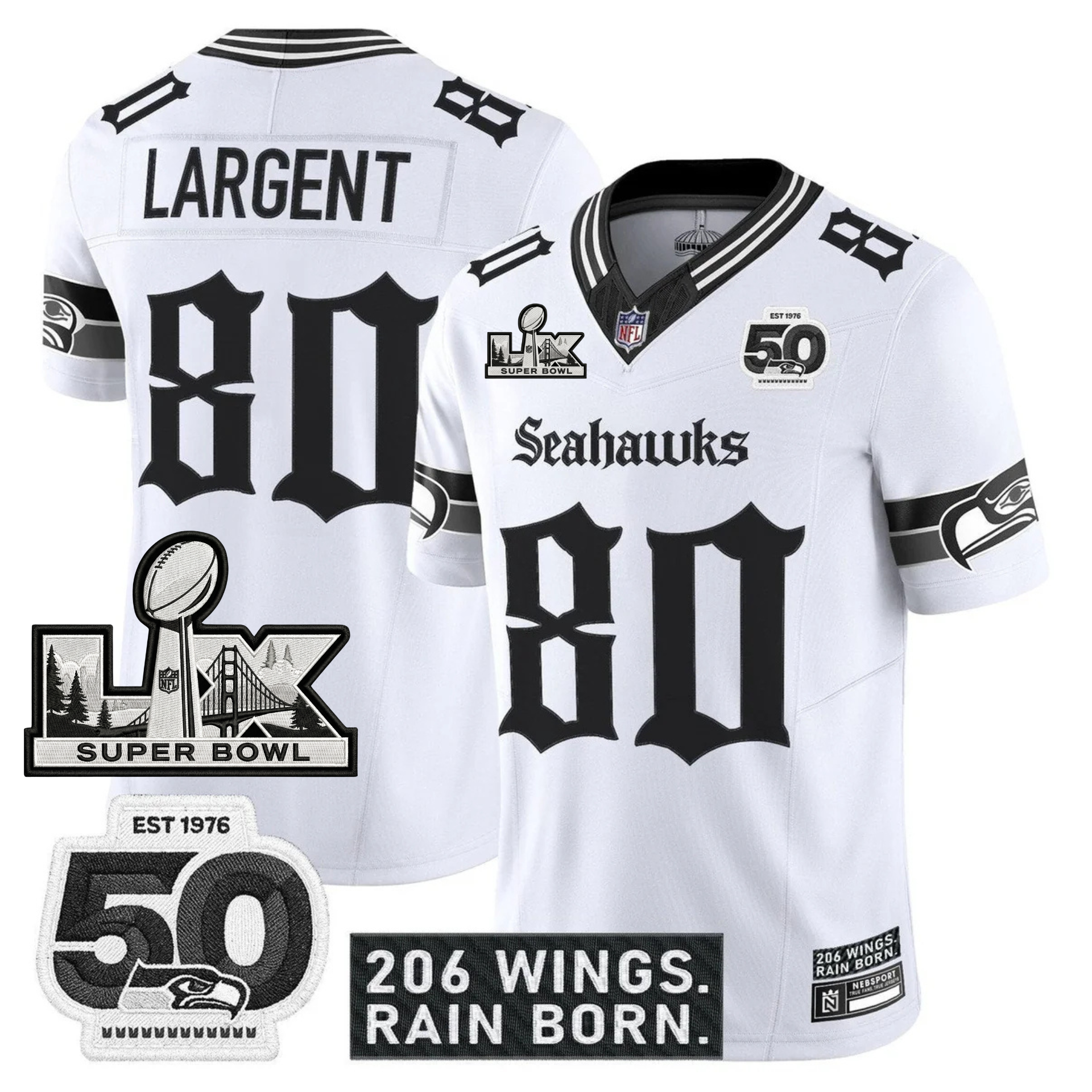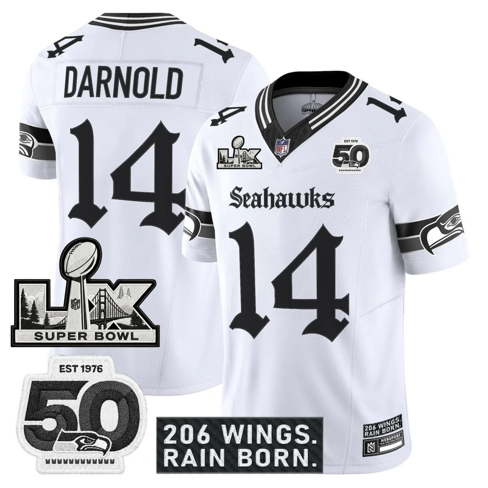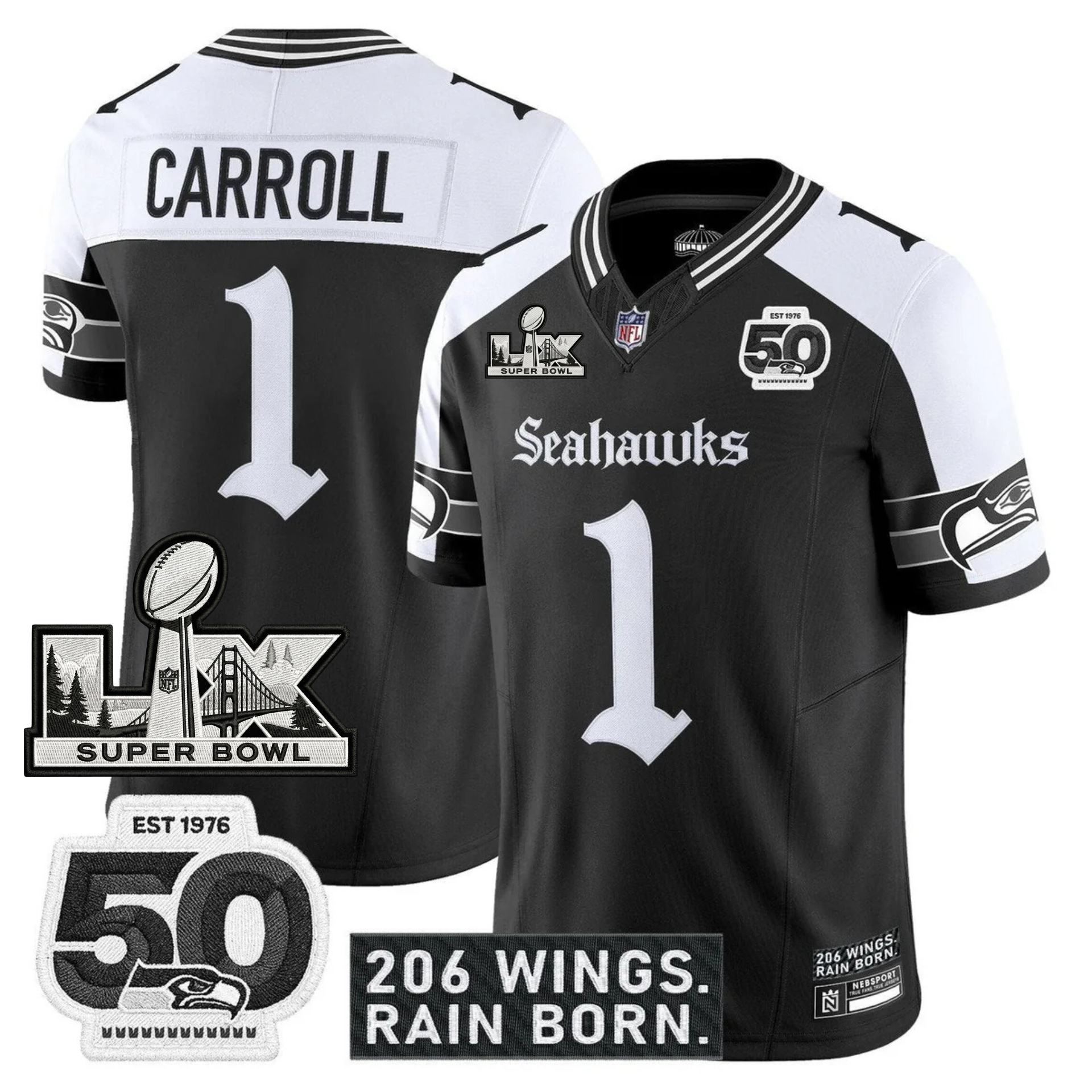 SEA 'Gothic Rain City Shadows Edition' Vapor Jersey - NFC Champions Patch - All Stitched