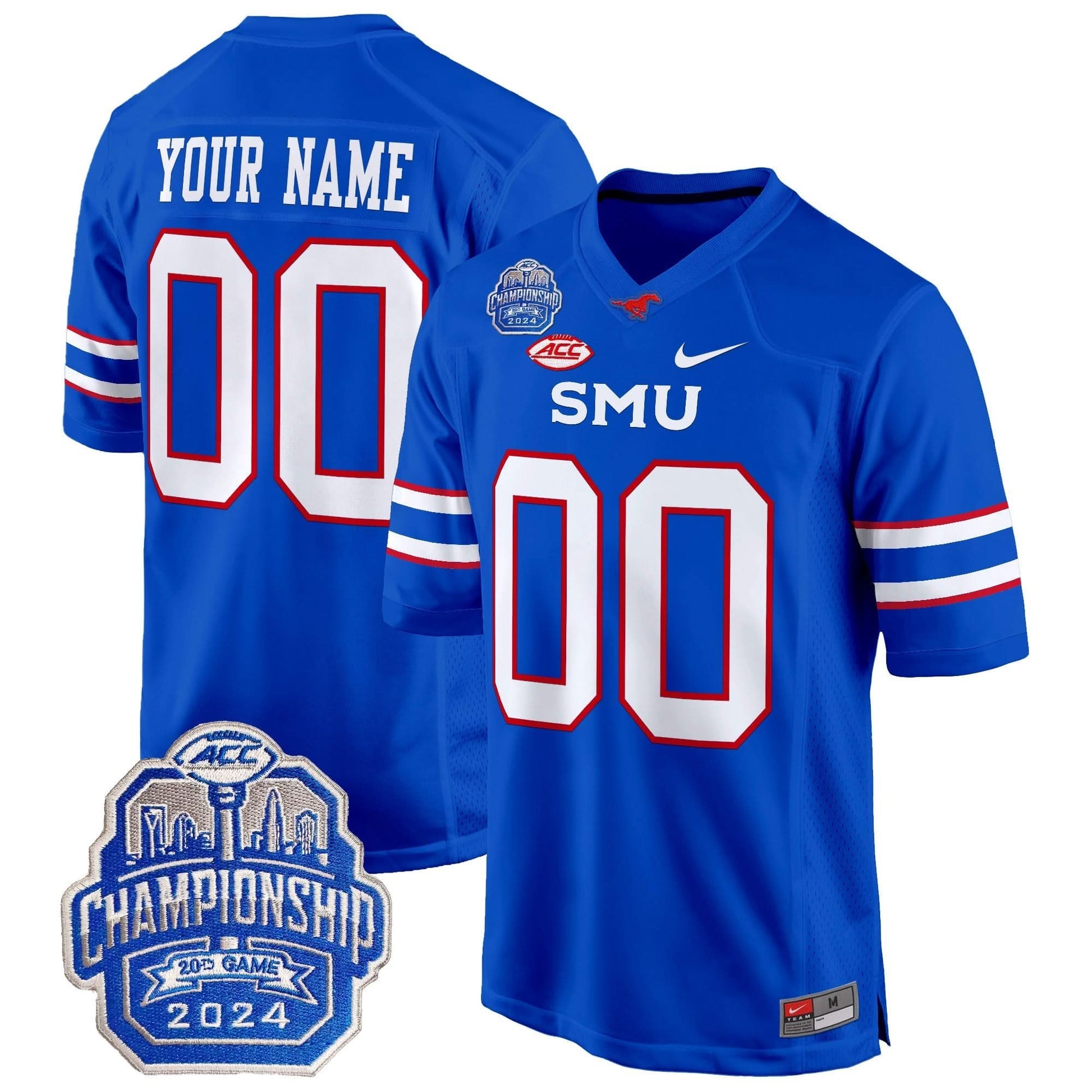SMU Mustangs 2024 ACC Championship Patch Game Custom Jersey - All Stitched