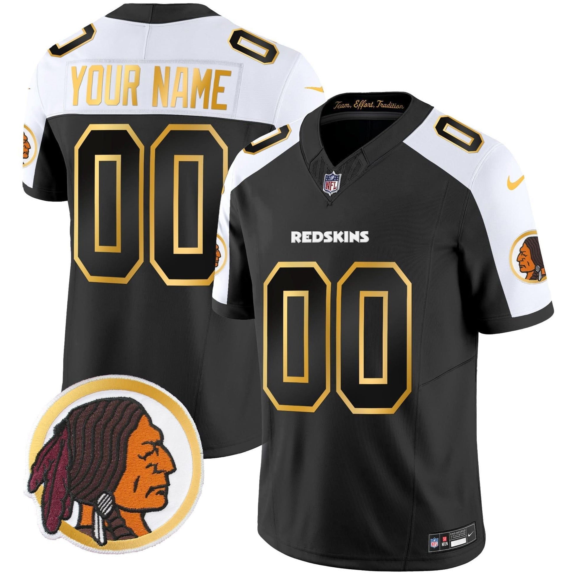 Washington Redskins Throwback Vapor Gold Trim Custom Jersey - All Stitched